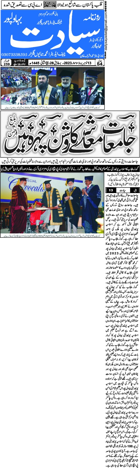 The Islamia University of Bahawalpur was established in the year 1975 by upgrading historical institute of the Jamia Abbasia.
