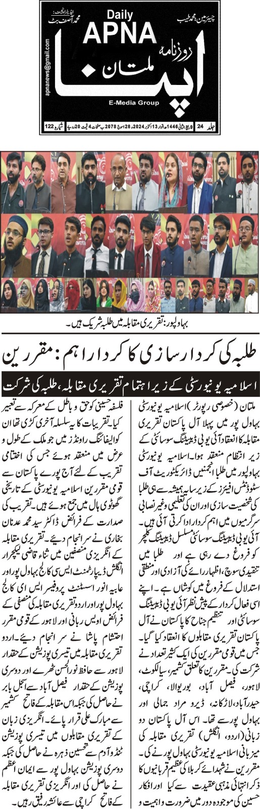 The Islamia University of Bahawalpur was established in the year 1975 by upgrading historical institute of the Jamia Abbasia.