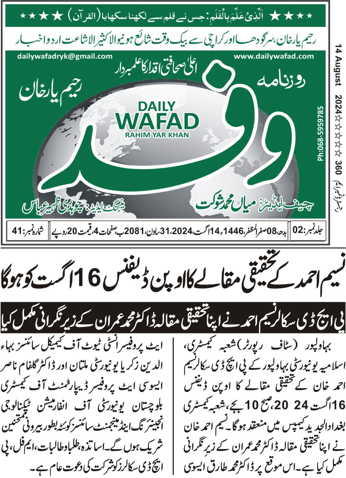 News Cuttings 14 August 2024