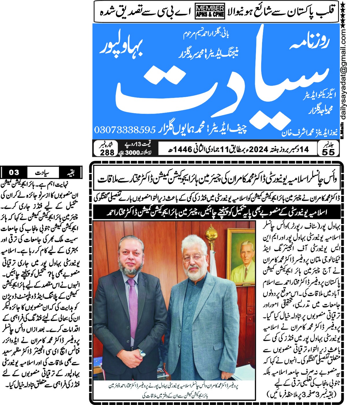The Islamia University of Bahawalpur was established in the year 1975 by upgrading historical institute of the Jamia Abbasia.