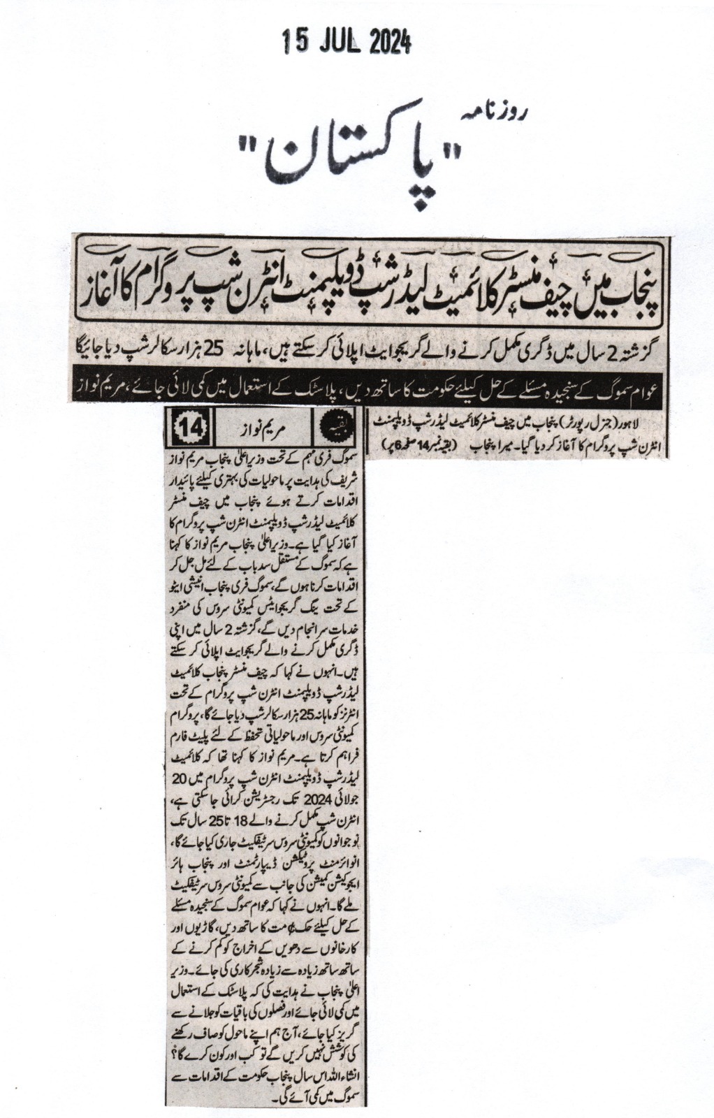 News Cuttings 15 July 2024