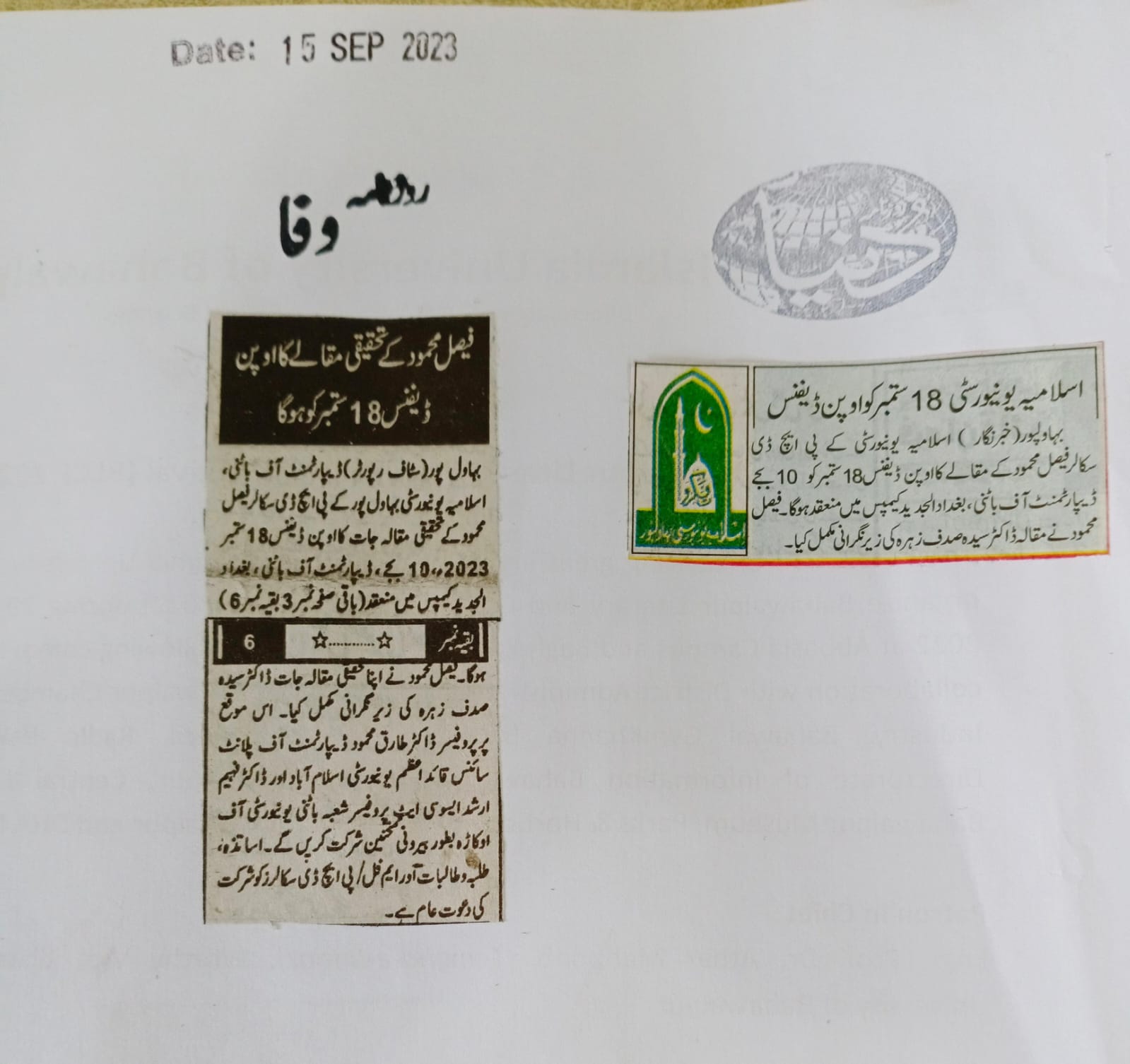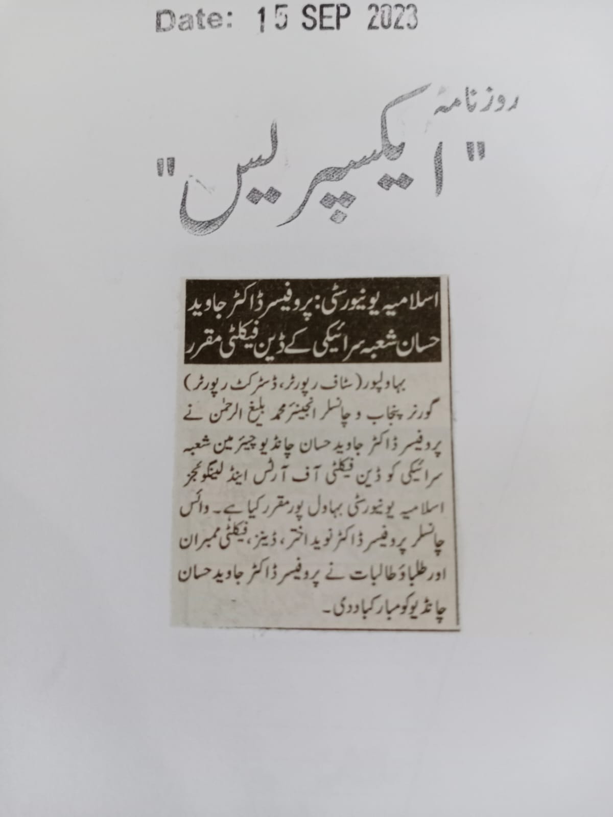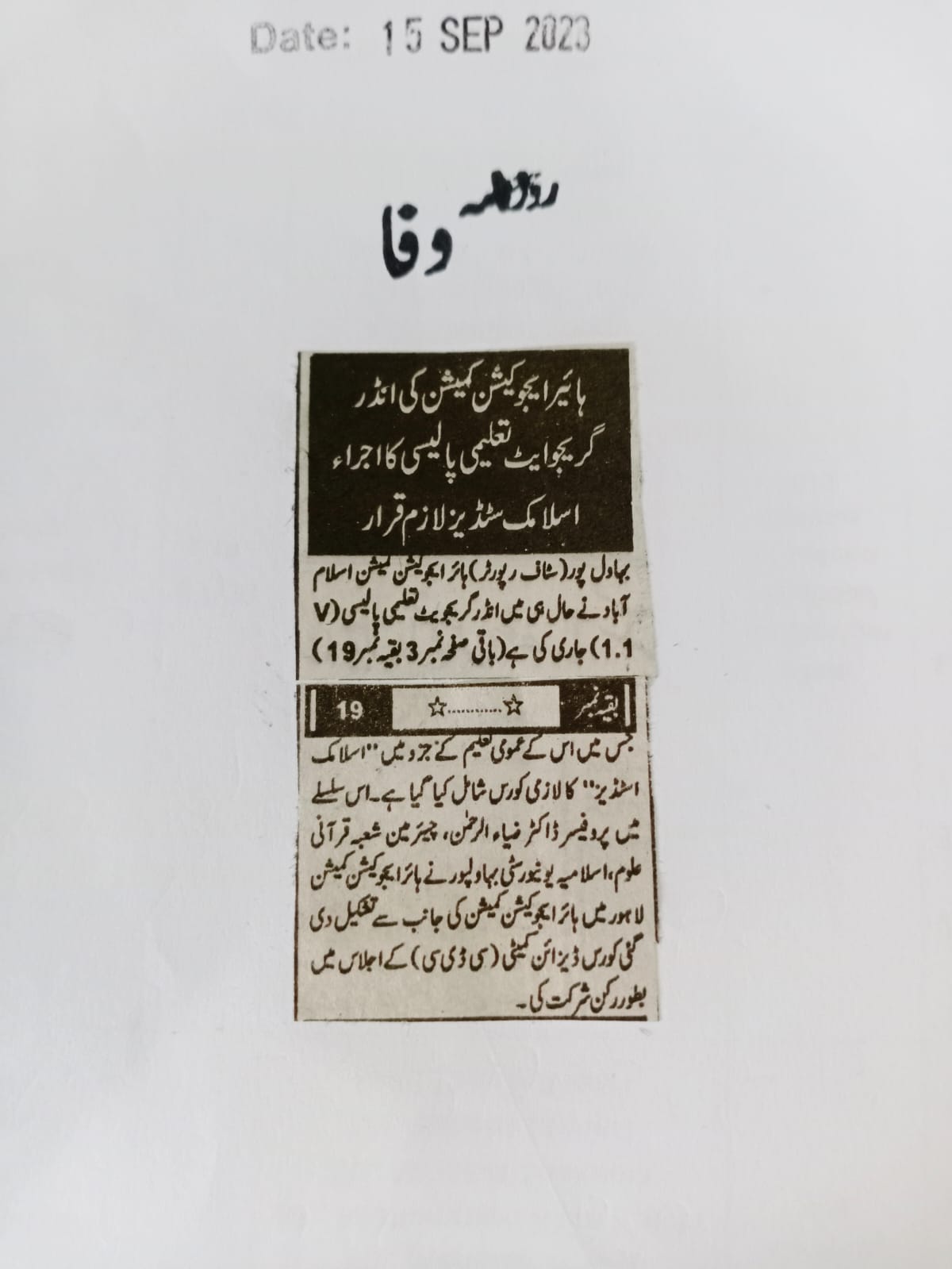 News Cuttings 15 September 2023
