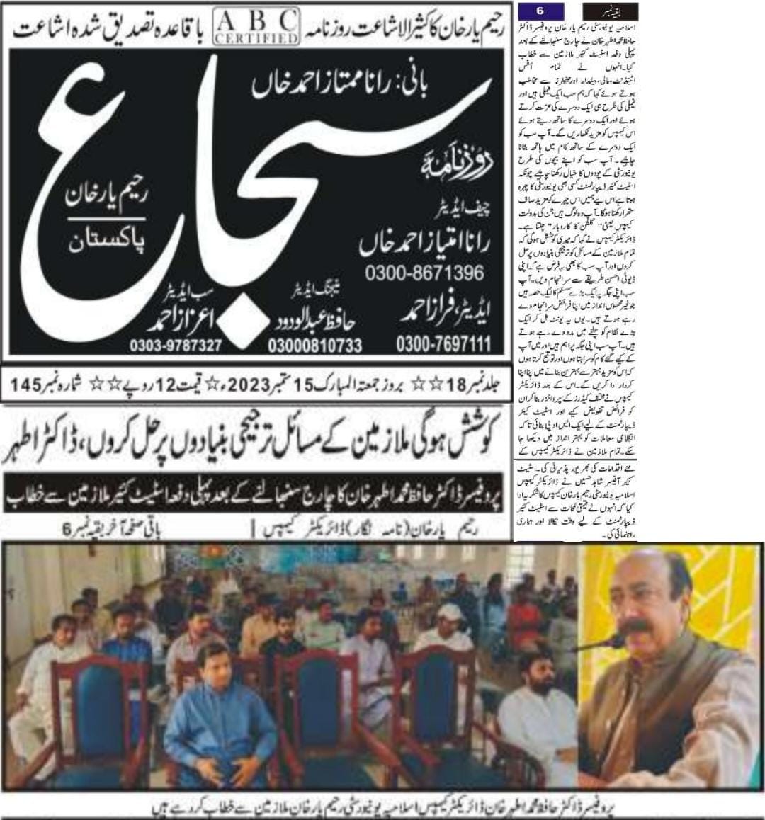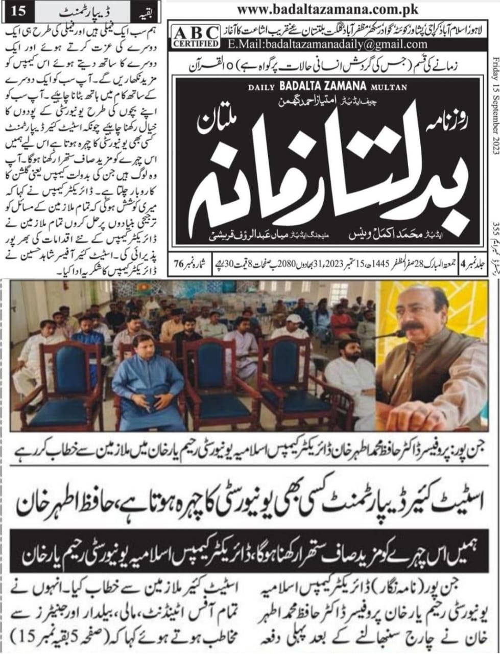 The Islamia University of Bahawalpur was established in the year 1975 by upgrading historical institute of the Jamia Abbasia.