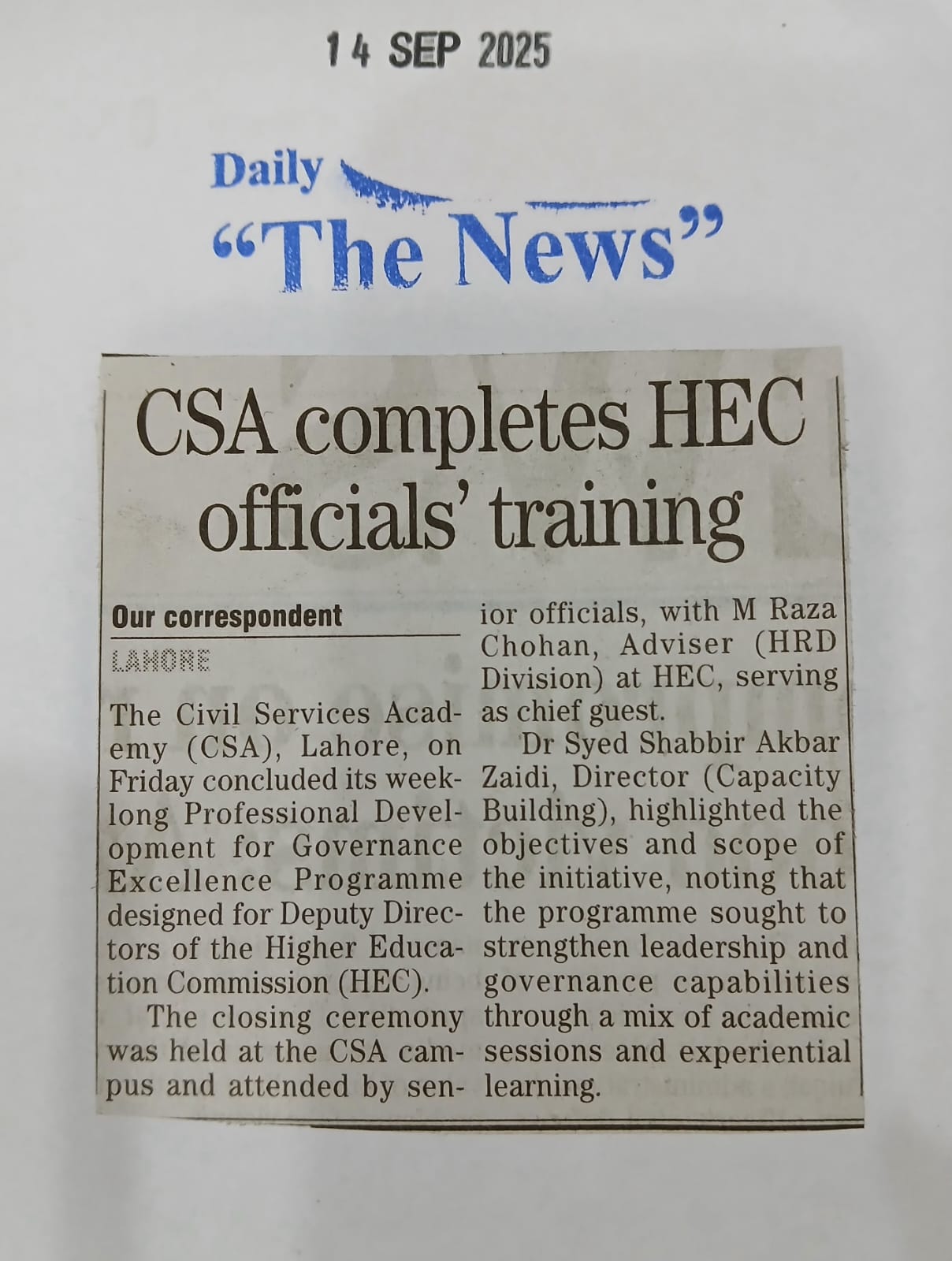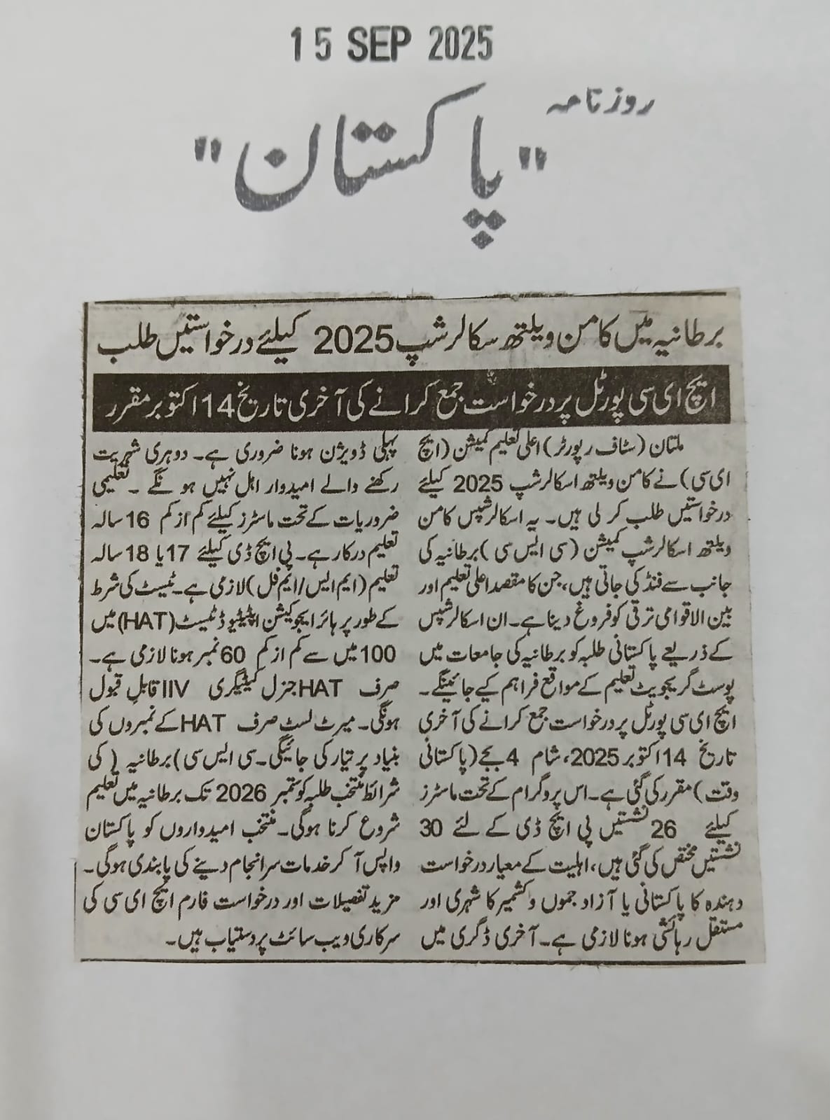 News Cuttings 15 September 2025