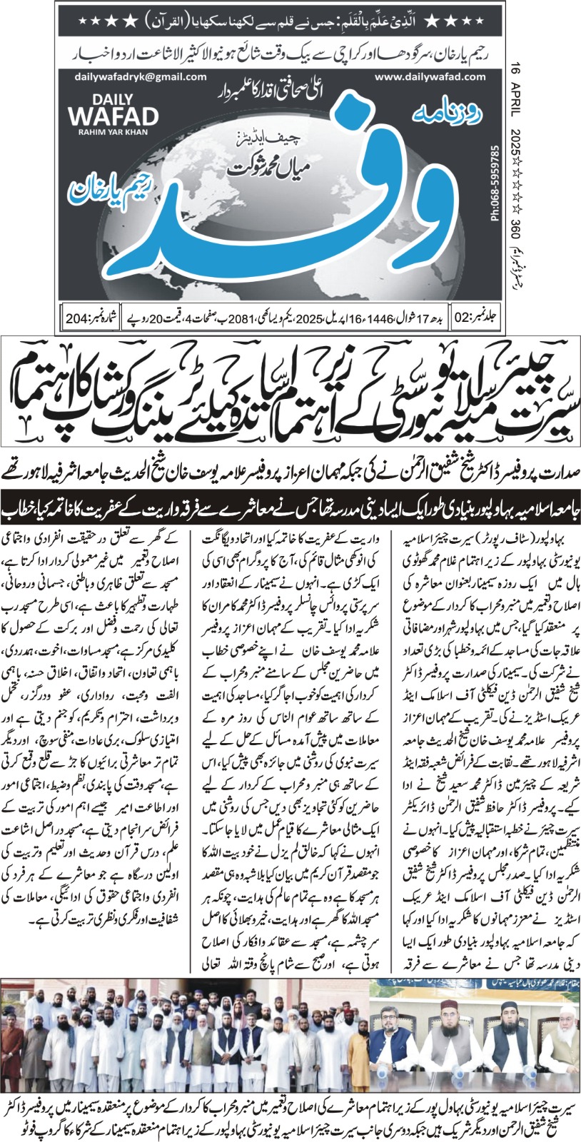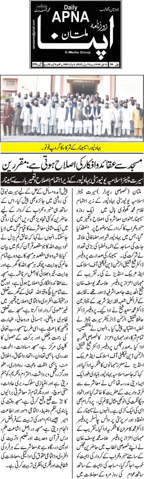 The Islamia University of Bahawalpur was established in the year 1975 by upgrading historical institute of the Jamia Abbasia.