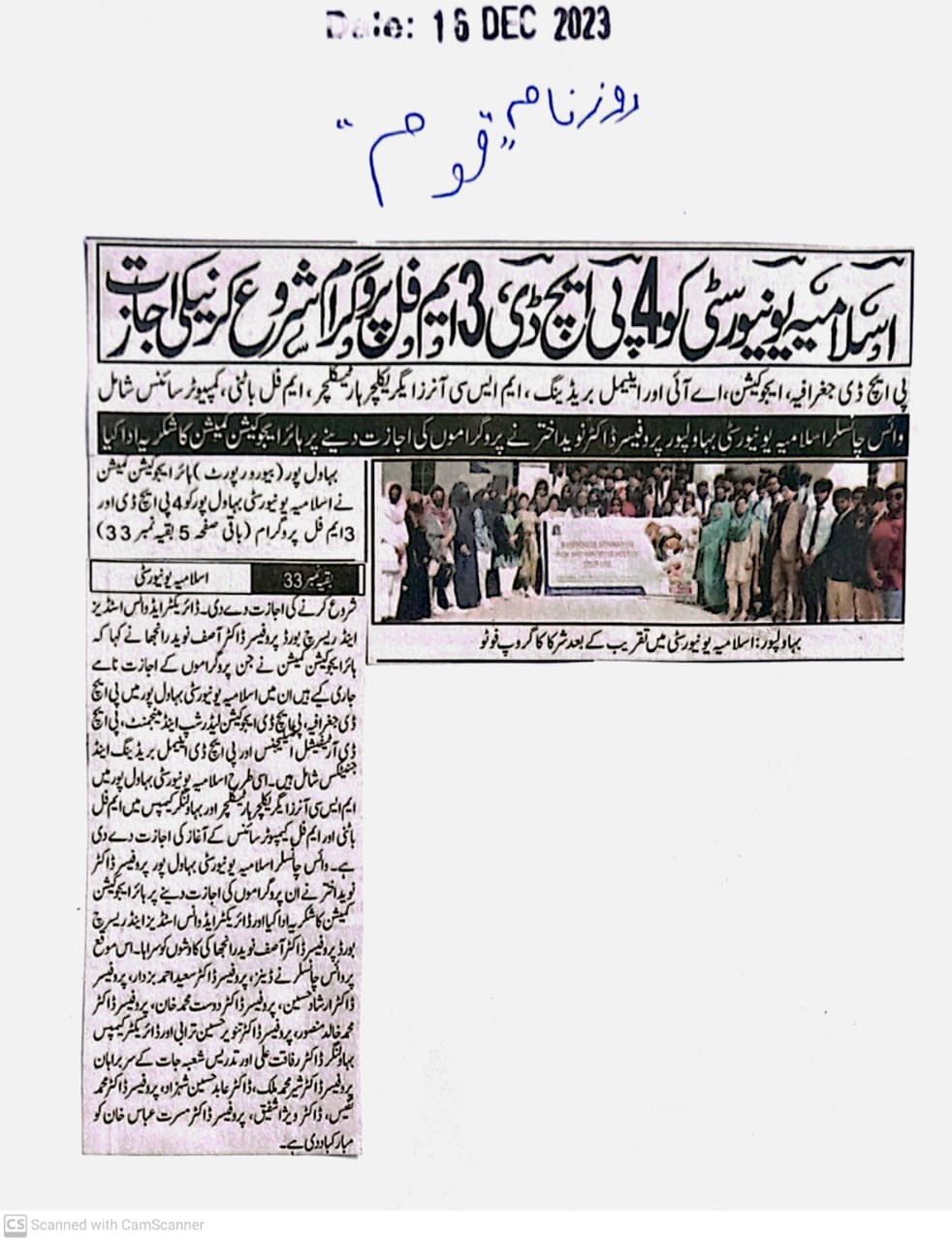 The Islamia University of Bahawalpur was established in the year 1975 by upgrading historical institute of the Jamia Abbasia.