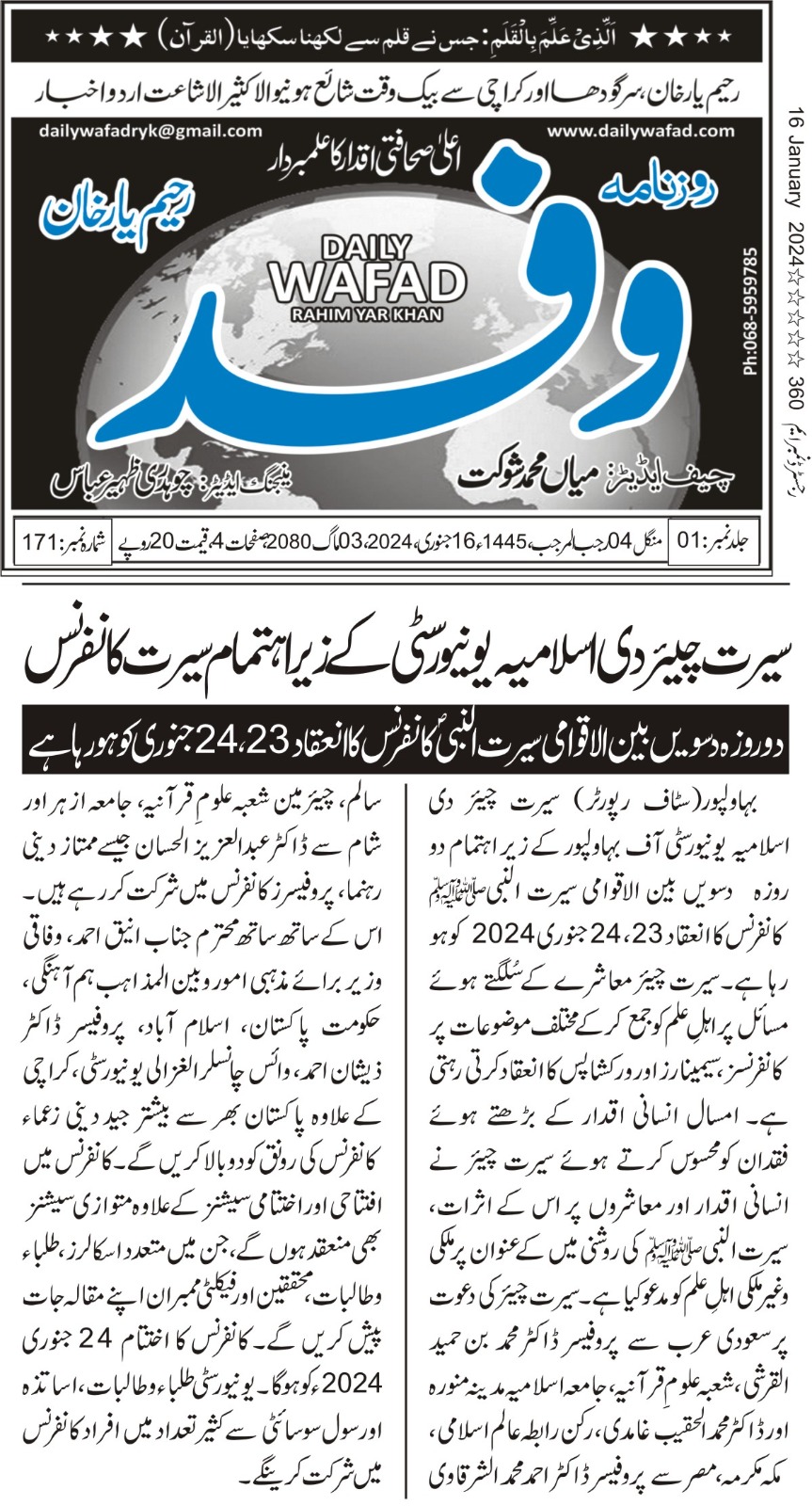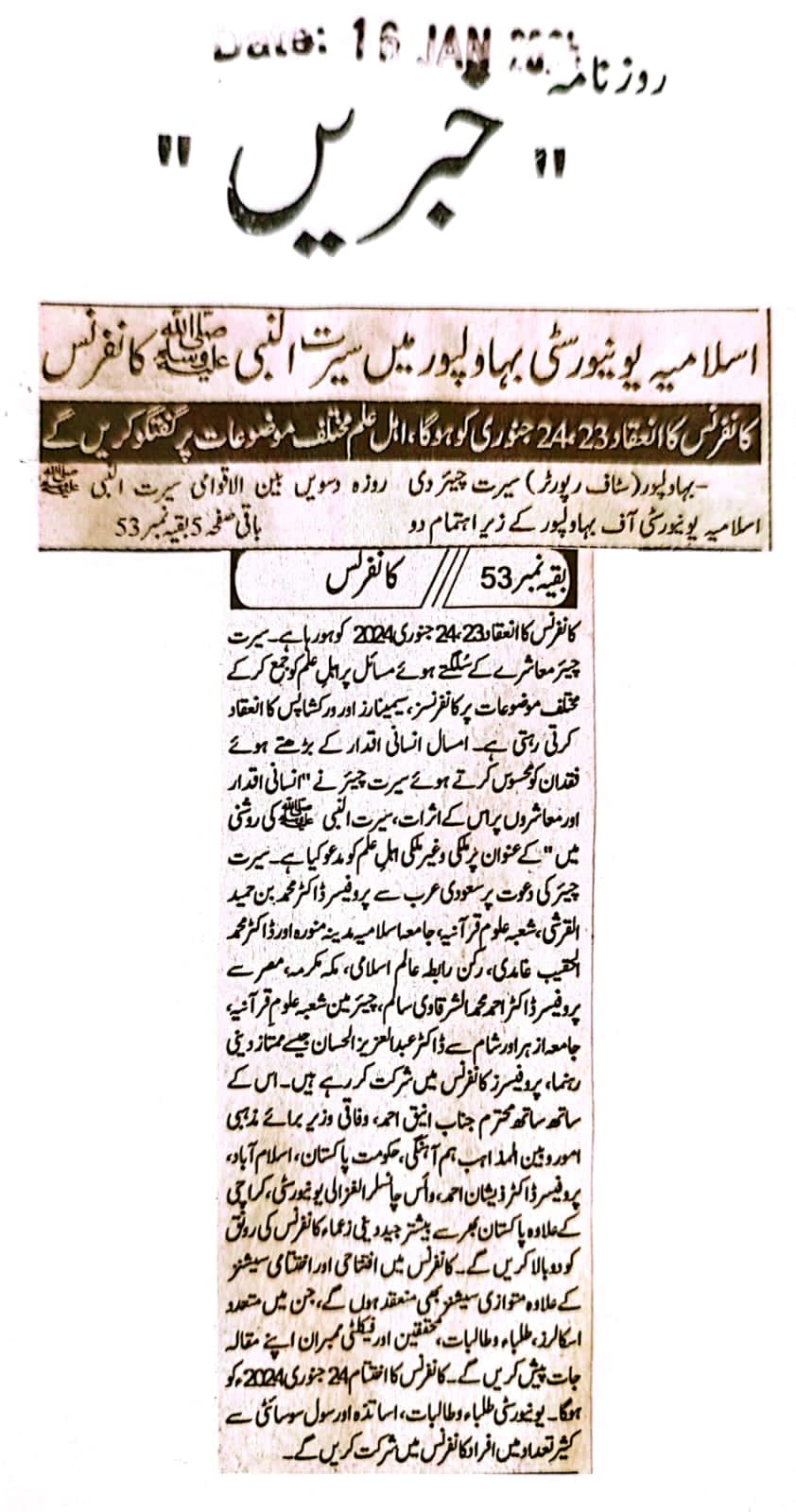 News Cuttings 16 January 2024