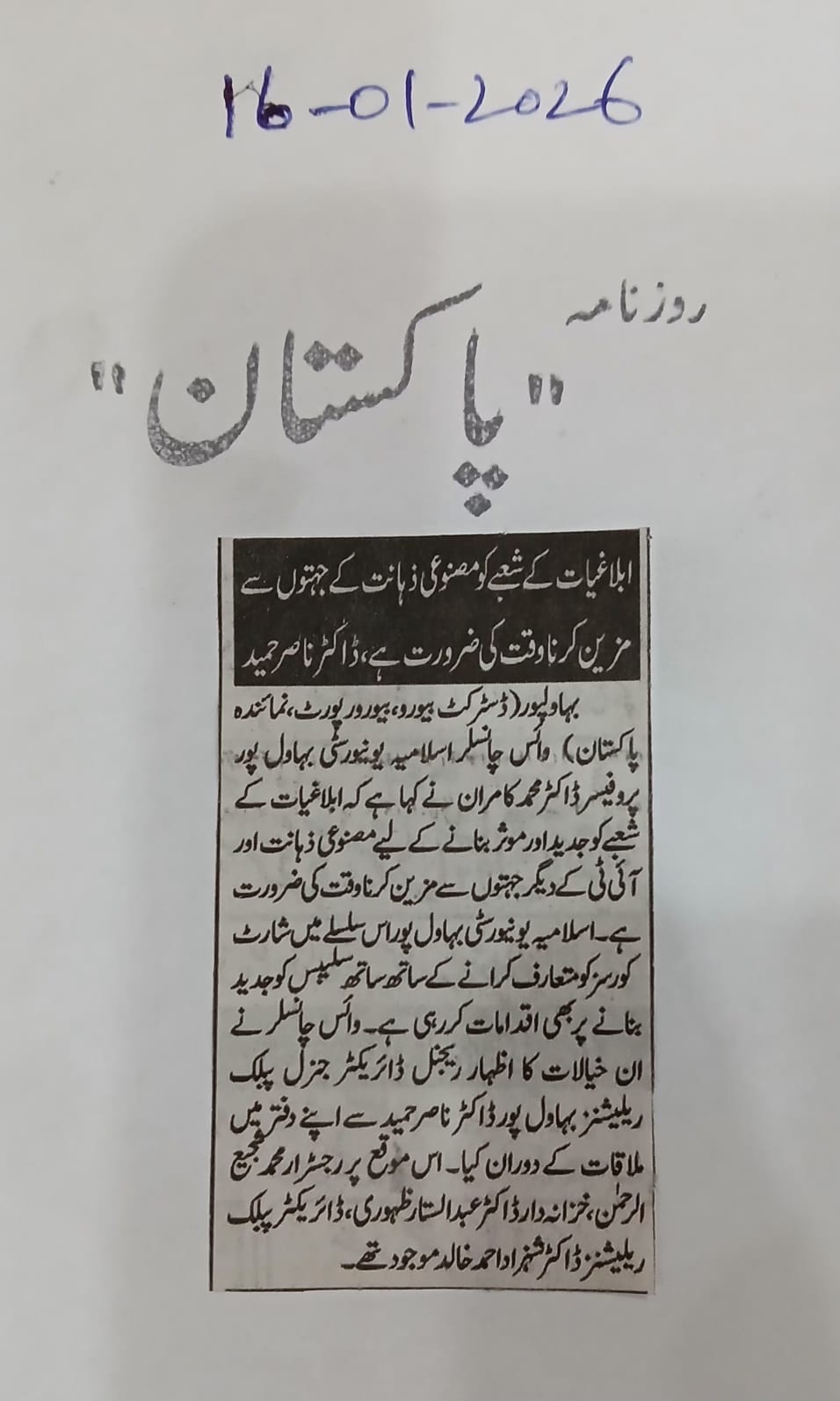 The Islamia University of Bahawalpur was established in the year 1975 by upgrading historical institute of the Jamia Abbasia.