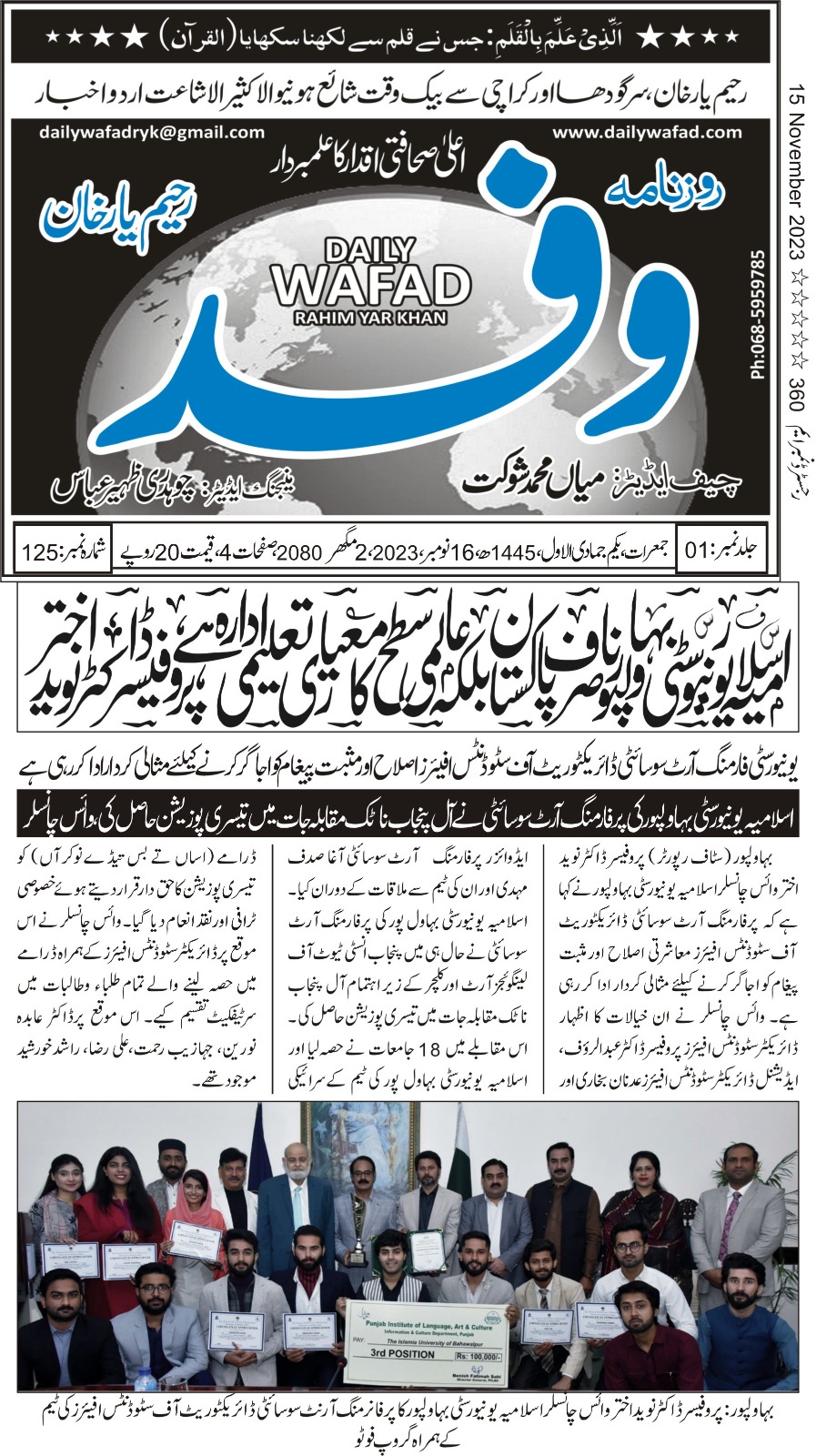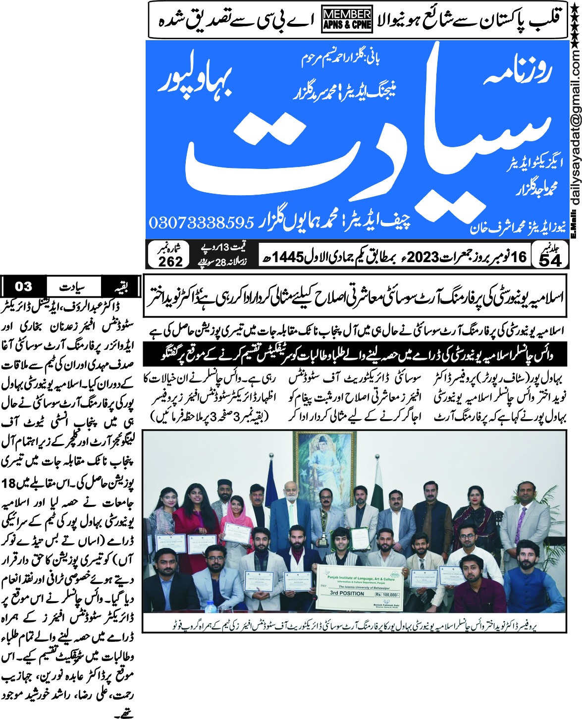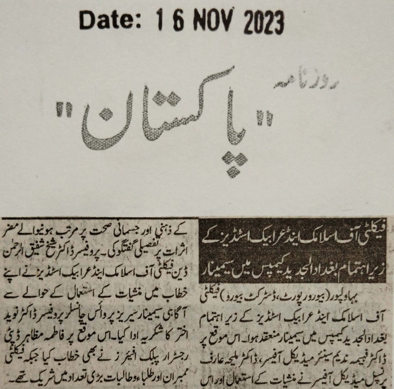 The Islamia University of Bahawalpur was established in the year 1975 by upgrading historical institute of the Jamia Abbasia.