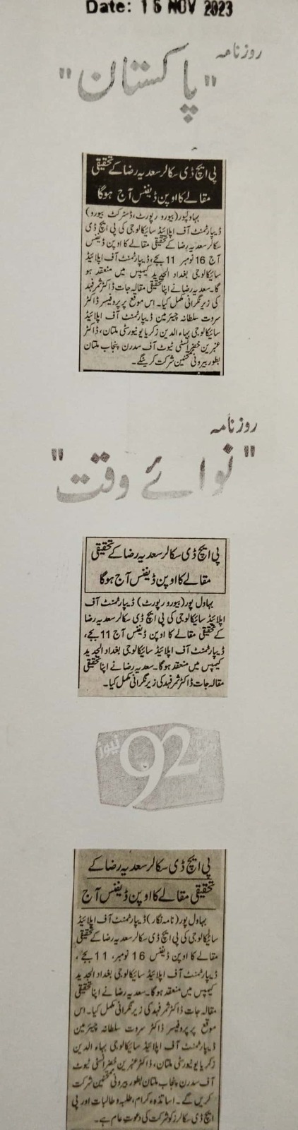 News Cuttings 16 November 2023