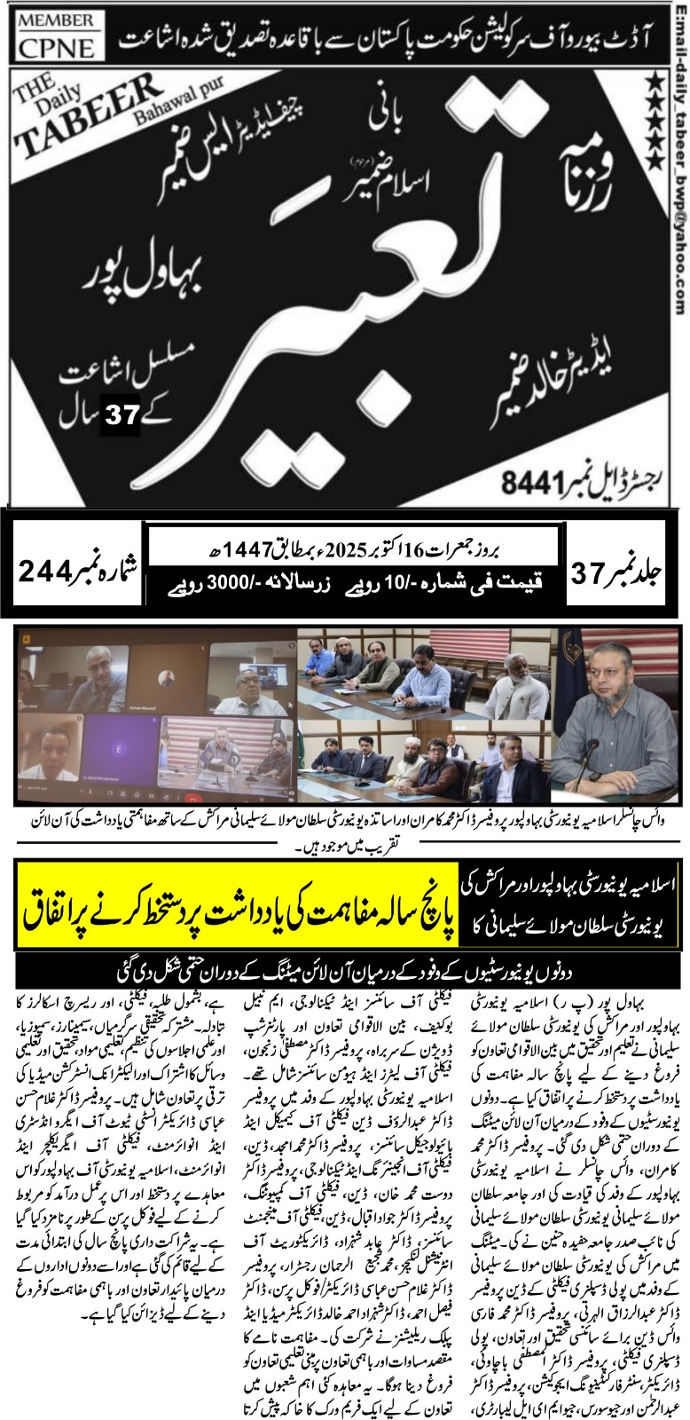 The Islamia University of Bahawalpur was established in the year 1975 by upgrading historical institute of the Jamia Abbasia.