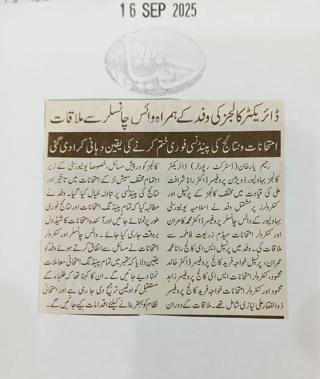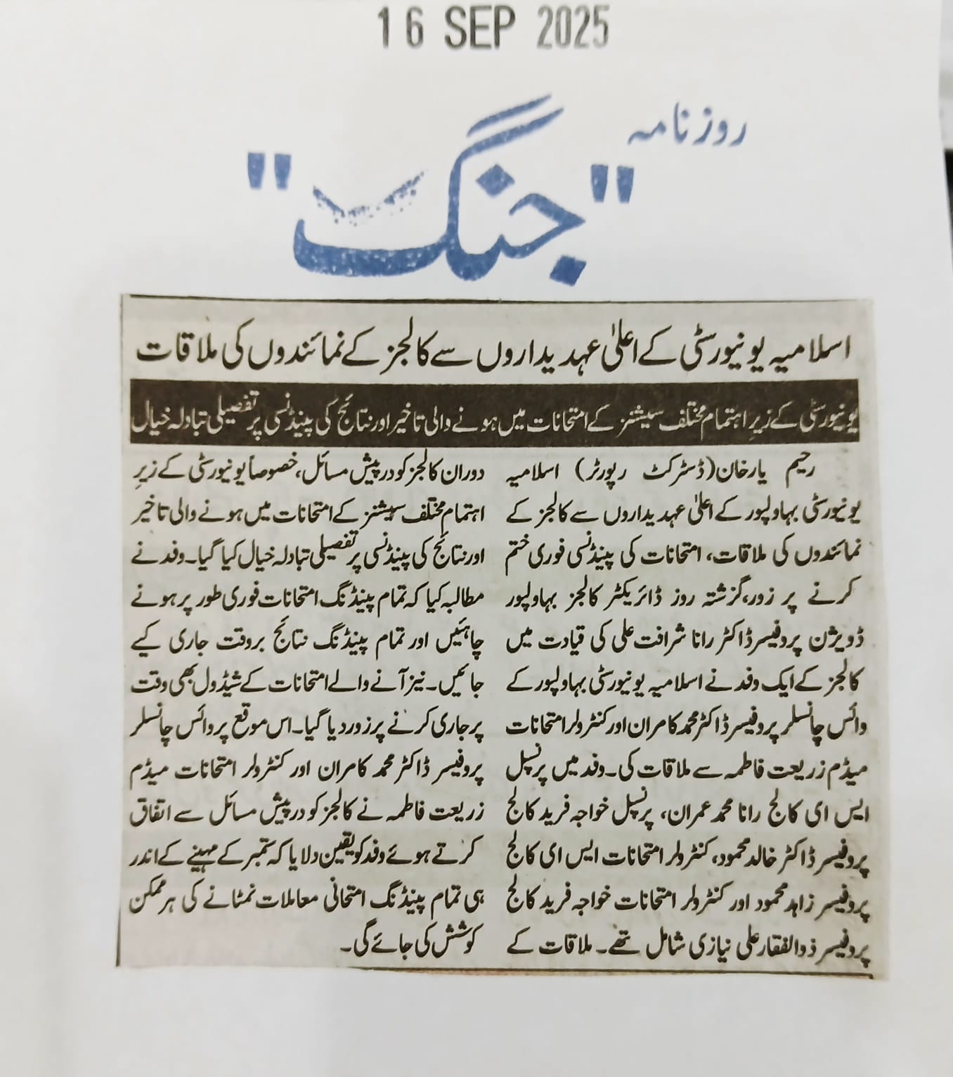 The Islamia University of Bahawalpur was established in the year 1975 by upgrading historical institute of the Jamia Abbasia.