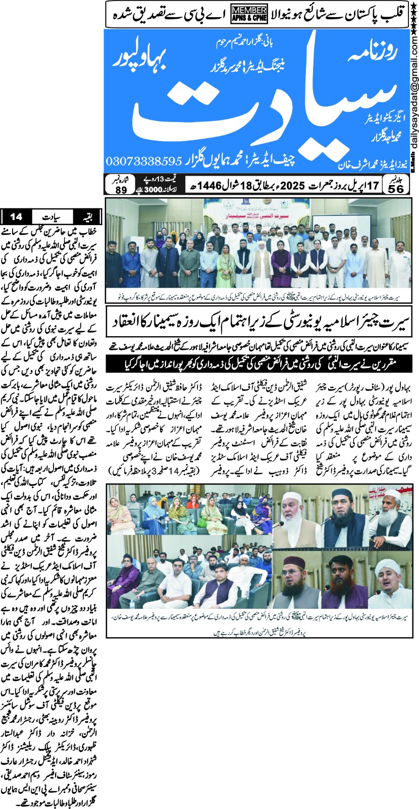 The Islamia University of Bahawalpur was established in the year 1975 by upgrading historical institute of the Jamia Abbasia.