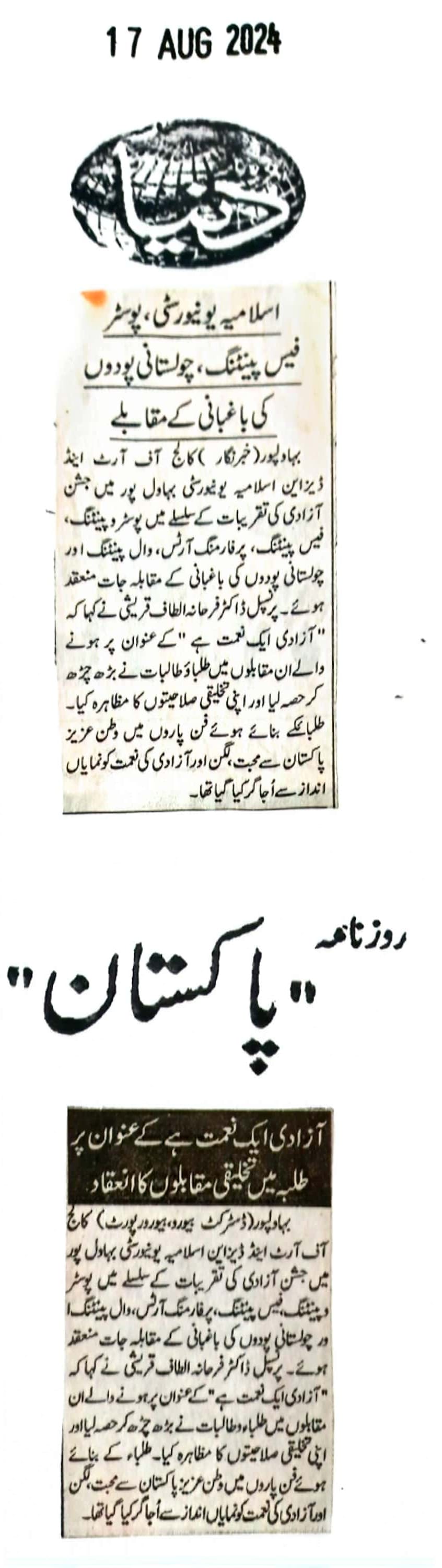 The Islamia University of Bahawalpur was established in the year 1975 by upgrading historical institute of the Jamia Abbasia.
