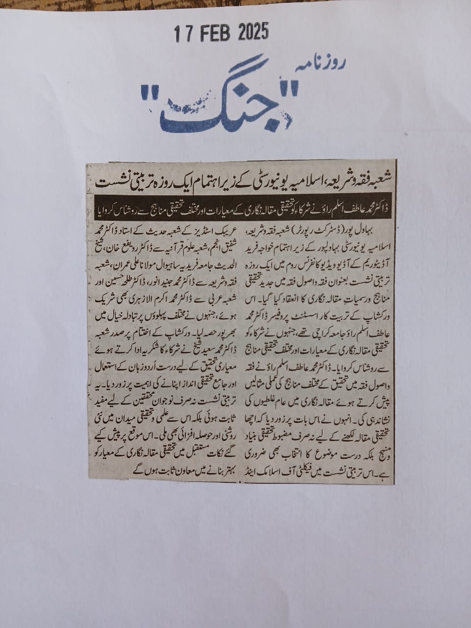 The Islamia University of Bahawalpur was established in the year 1975 by upgrading historical institute of the Jamia Abbasia.
