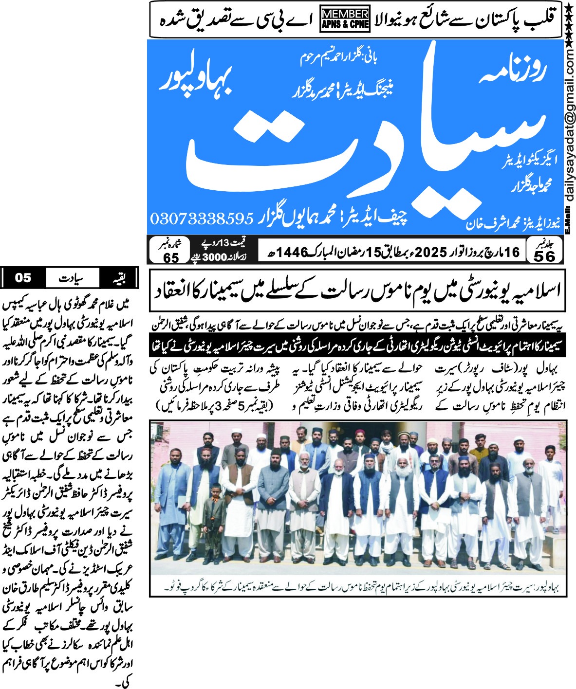 The Islamia University of Bahawalpur was established in the year 1975 by upgrading historical institute of the Jamia Abbasia.