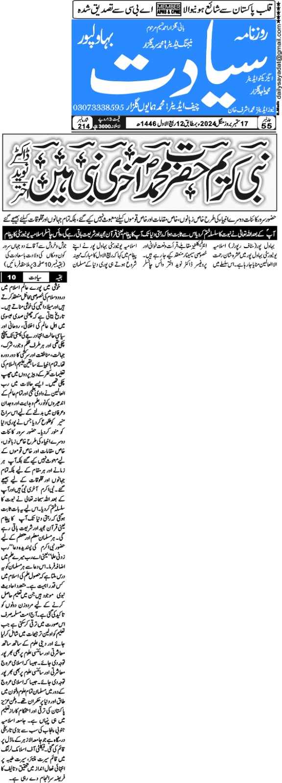 The Islamia University of Bahawalpur was established in the year 1975 by upgrading historical institute of the Jamia Abbasia.