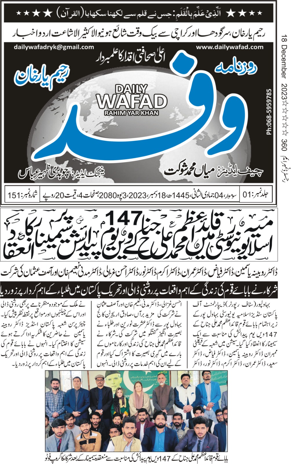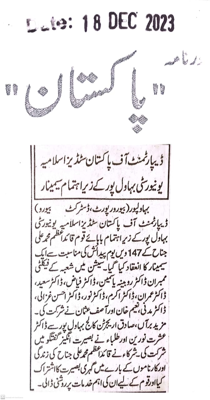 The Islamia University of Bahawalpur was established in the year 1975 by upgrading historical institute of the Jamia Abbasia.