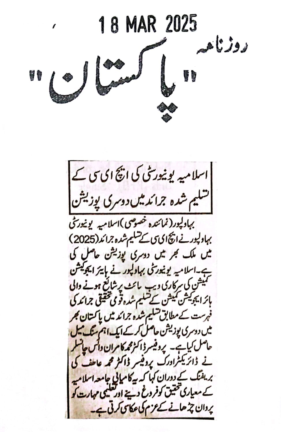 The Islamia University of Bahawalpur was established in the year 1975 by upgrading historical institute of the Jamia Abbasia.