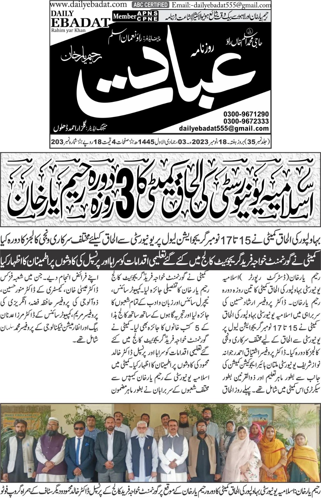 The Islamia University of Bahawalpur was established in the year 1975 by upgrading historical institute of the Jamia Abbasia.