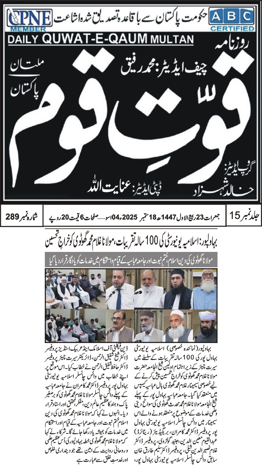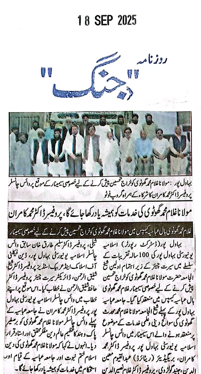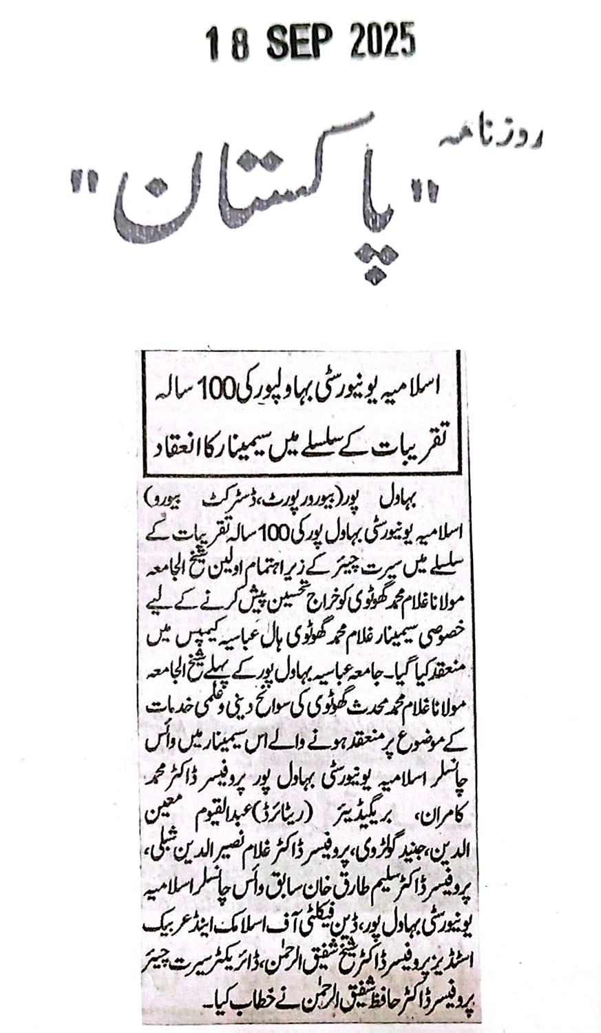 The Islamia University of Bahawalpur was established in the year 1975 by upgrading historical institute of the Jamia Abbasia.