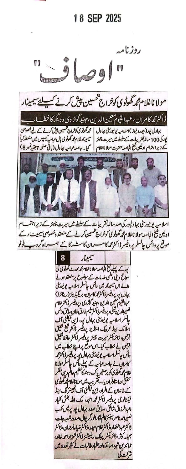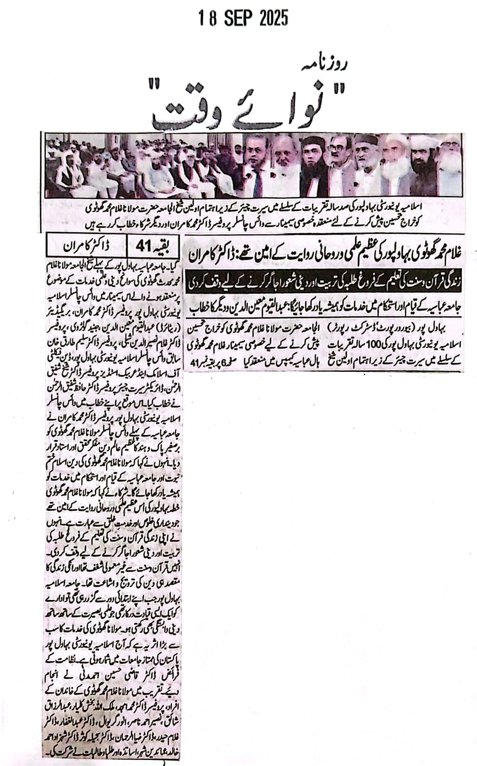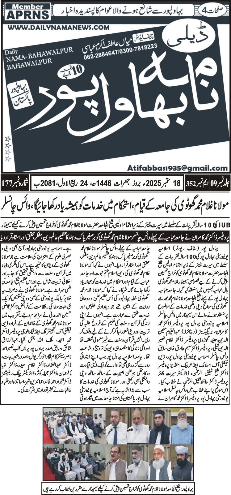 The Islamia University of Bahawalpur was established in the year 1975 by upgrading historical institute of the Jamia Abbasia.