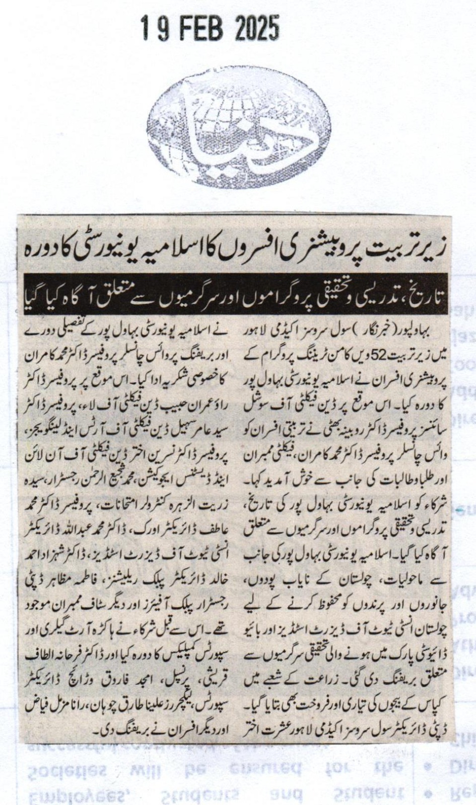 The Islamia University of Bahawalpur was established in the year 1975 by upgrading historical institute of the Jamia Abbasia.