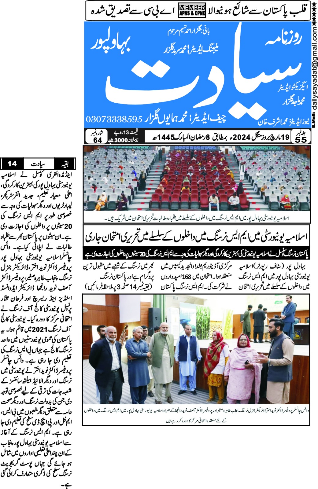 The Islamia University of Bahawalpur was established in the year 1975 by upgrading historical institute of the Jamia Abbasia.
