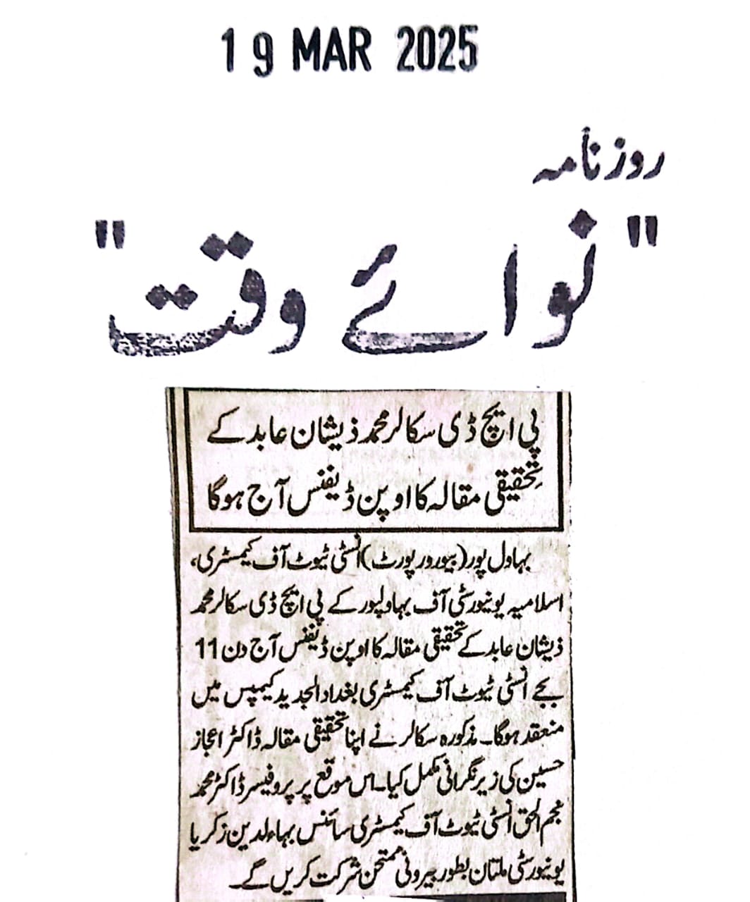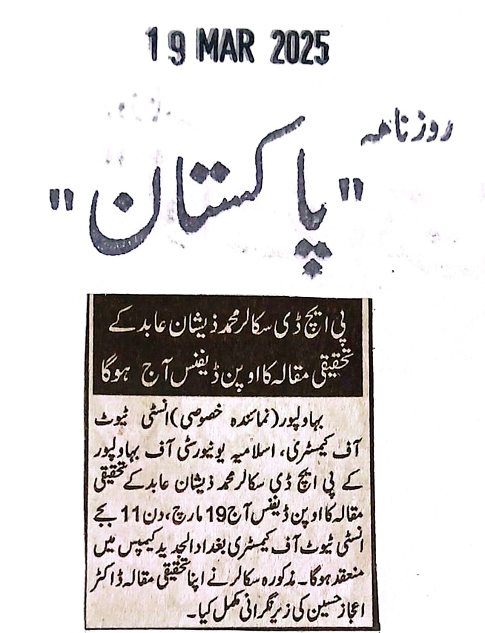 The Islamia University of Bahawalpur was established in the year 1975 by upgrading historical institute of the Jamia Abbasia.