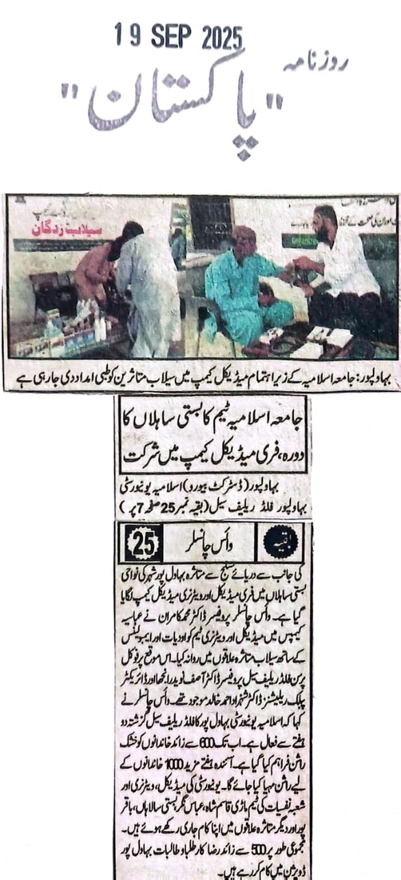 The Islamia University of Bahawalpur was established in the year 1975 by upgrading historical institute of the Jamia Abbasia.