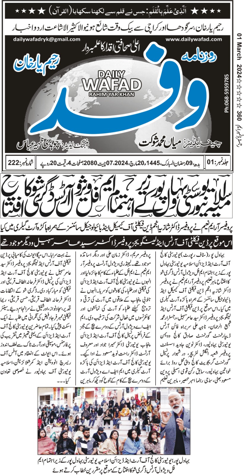 The Islamia University of Bahawalpur was established in the year 1975 by upgrading historical institute of the Jamia Abbasia.
