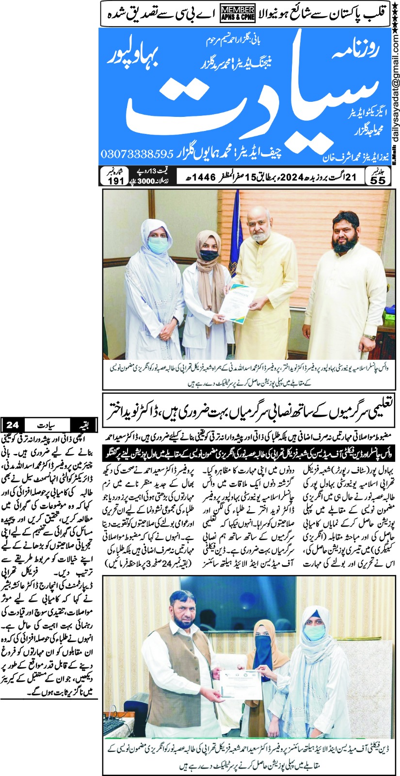 The Islamia University of Bahawalpur was established in the year 1975 by upgrading historical institute of the Jamia Abbasia.