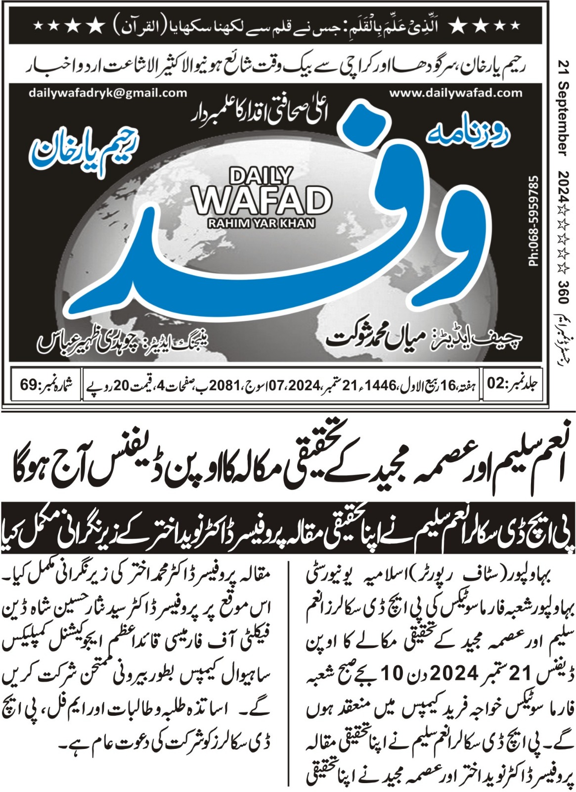 The Islamia University of Bahawalpur was established in the year 1975 by upgrading historical institute of the Jamia Abbasia.
