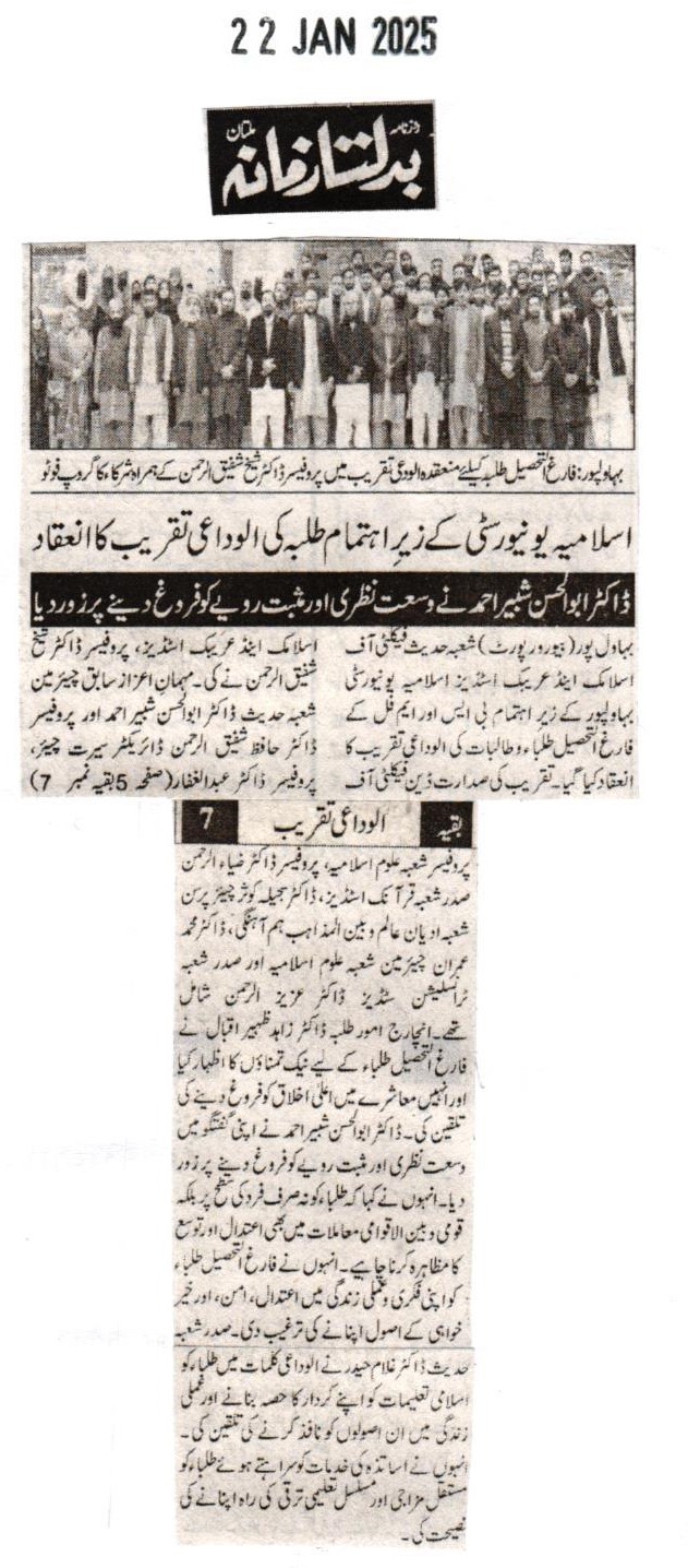The Islamia University of Bahawalpur was established in the year 1975 by upgrading historical institute of the Jamia Abbasia.