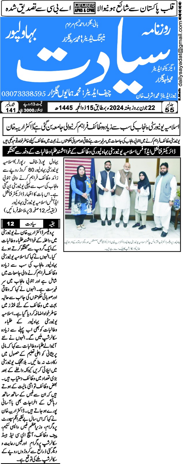 The Islamia University of Bahawalpur was established in the year 1975 by upgrading historical institute of the Jamia Abbasia.