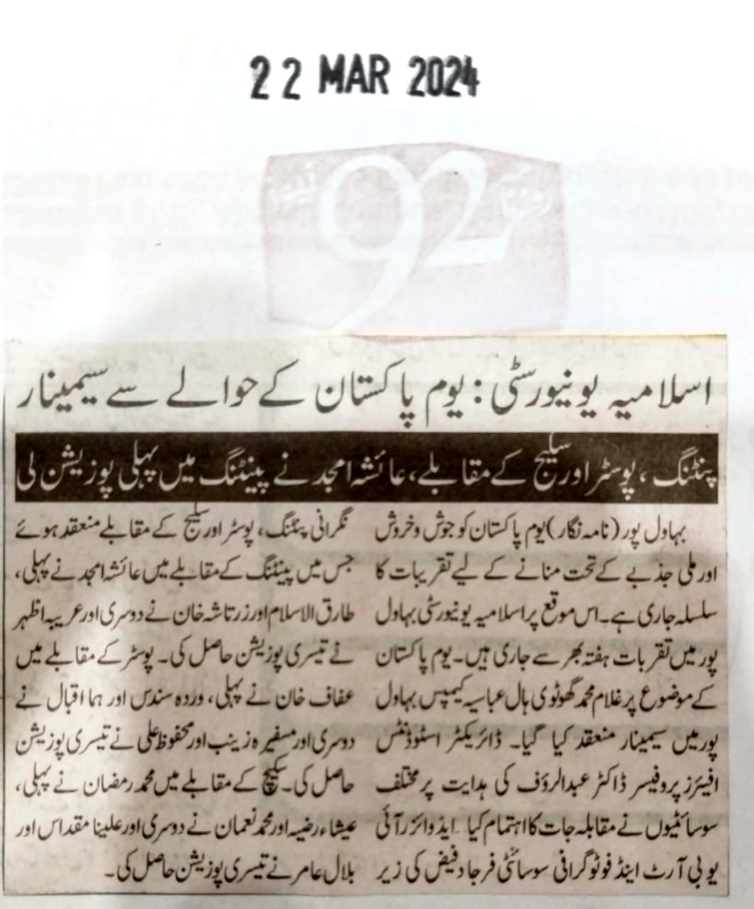 News Cuttings 22 March 2024
