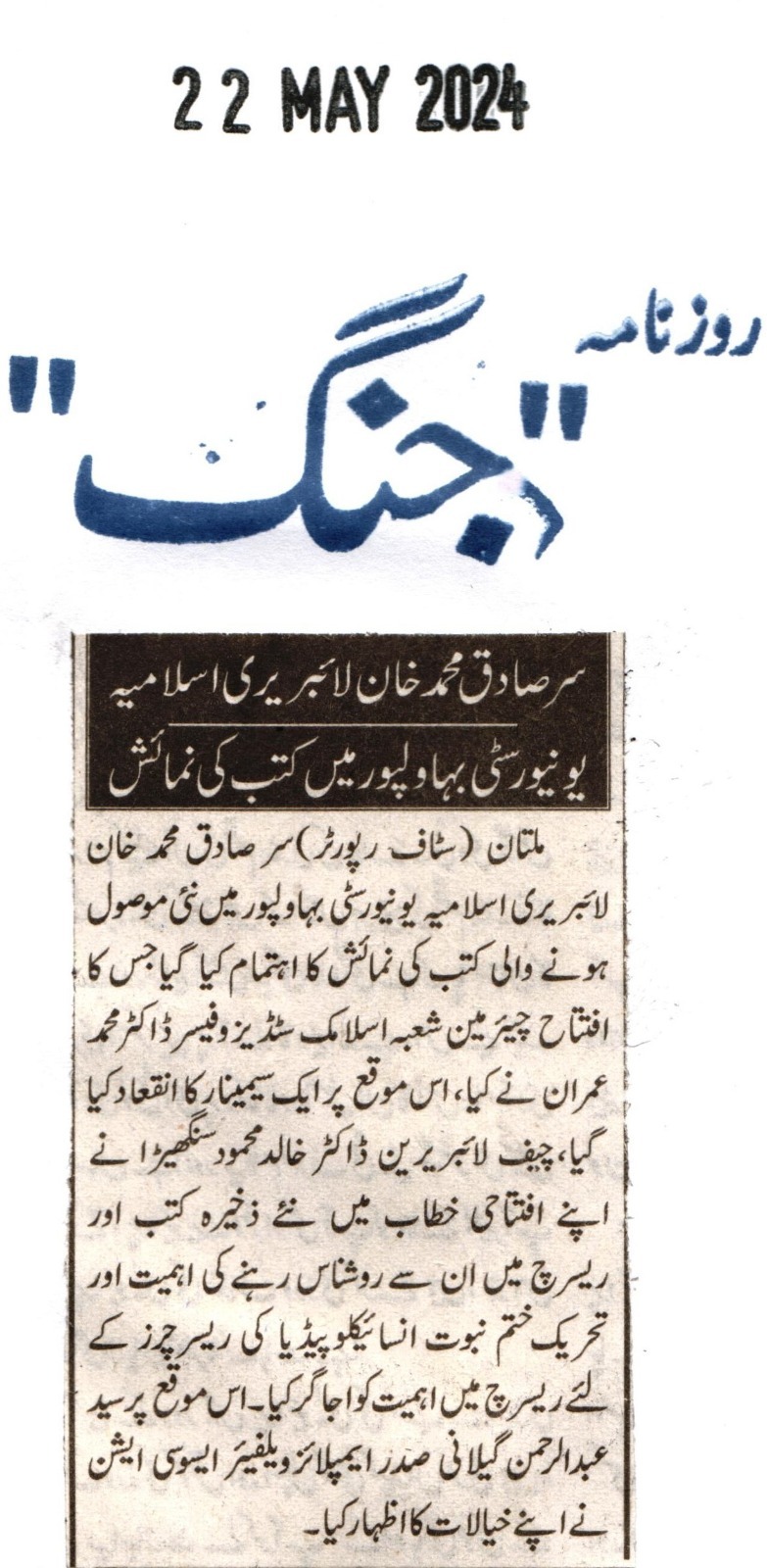 The Islamia University of Bahawalpur was established in the year 1975 by upgrading historical institute of the Jamia Abbasia.