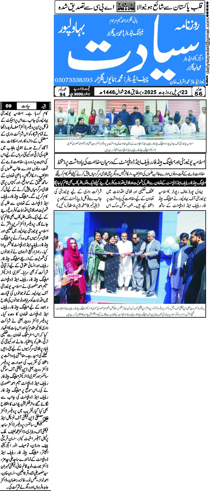 The Islamia University of Bahawalpur was established in the year 1975 by upgrading historical institute of the Jamia Abbasia.