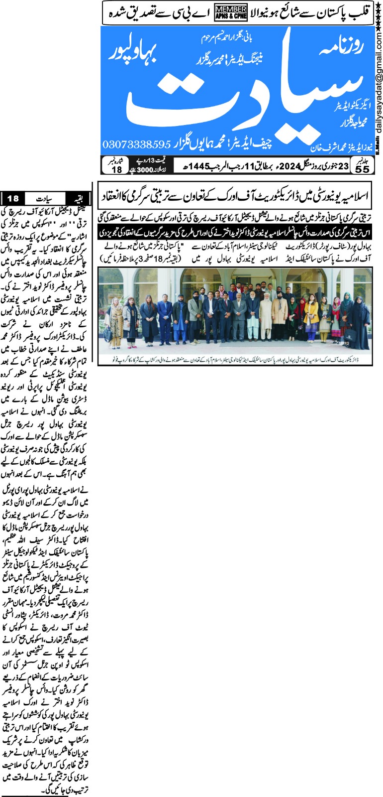 The Islamia University of Bahawalpur was established in the year 1975 by upgrading historical institute of the Jamia Abbasia.