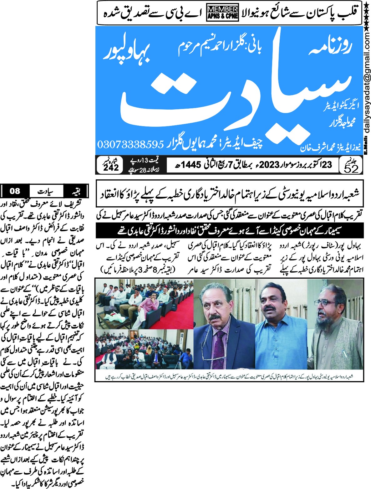 The Islamia University of Bahawalpur was established in the year 1975 by upgrading historical institute of the Jamia Abbasia.