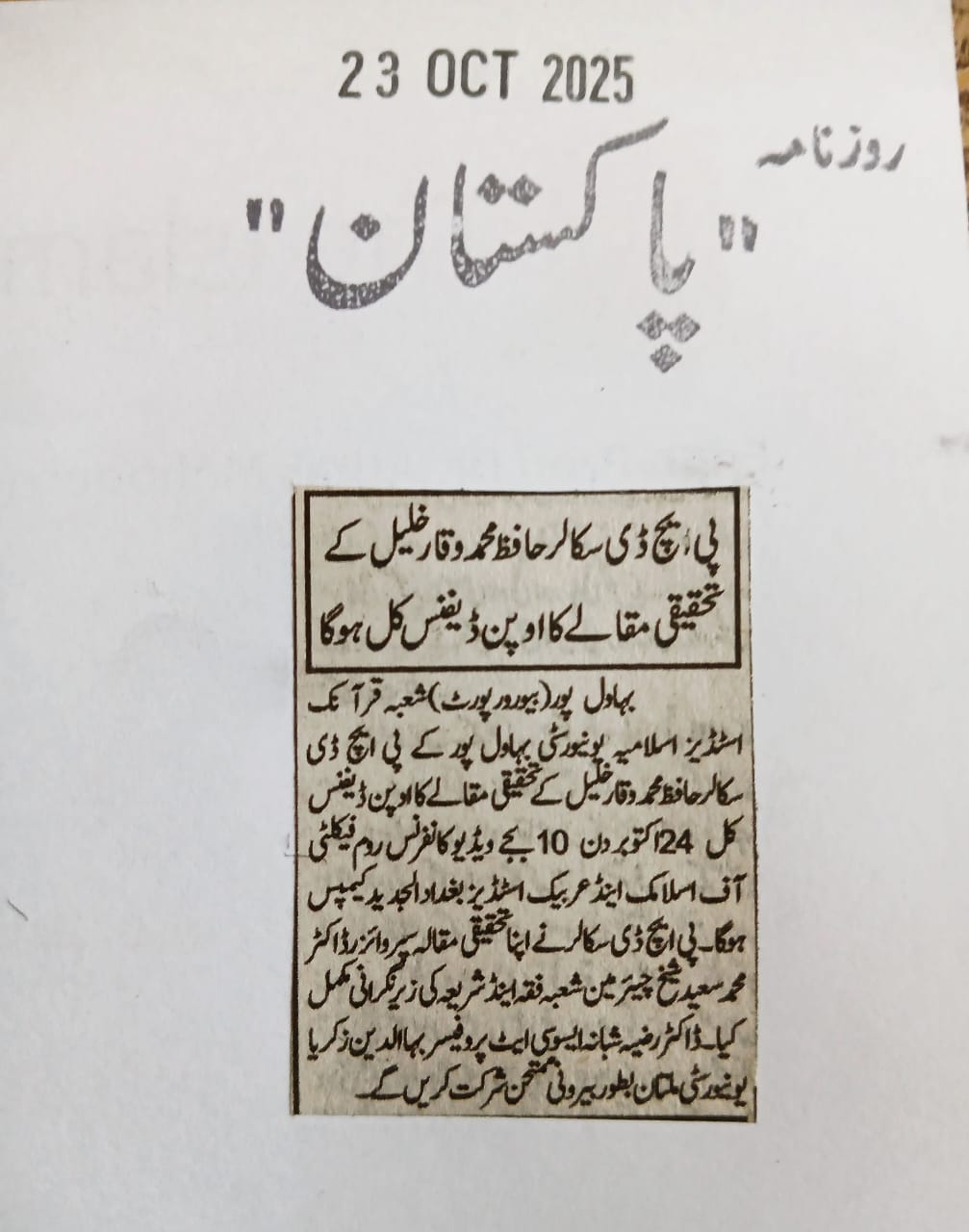 The Islamia University of Bahawalpur was established in the year 1975 by upgrading historical institute of the Jamia Abbasia.