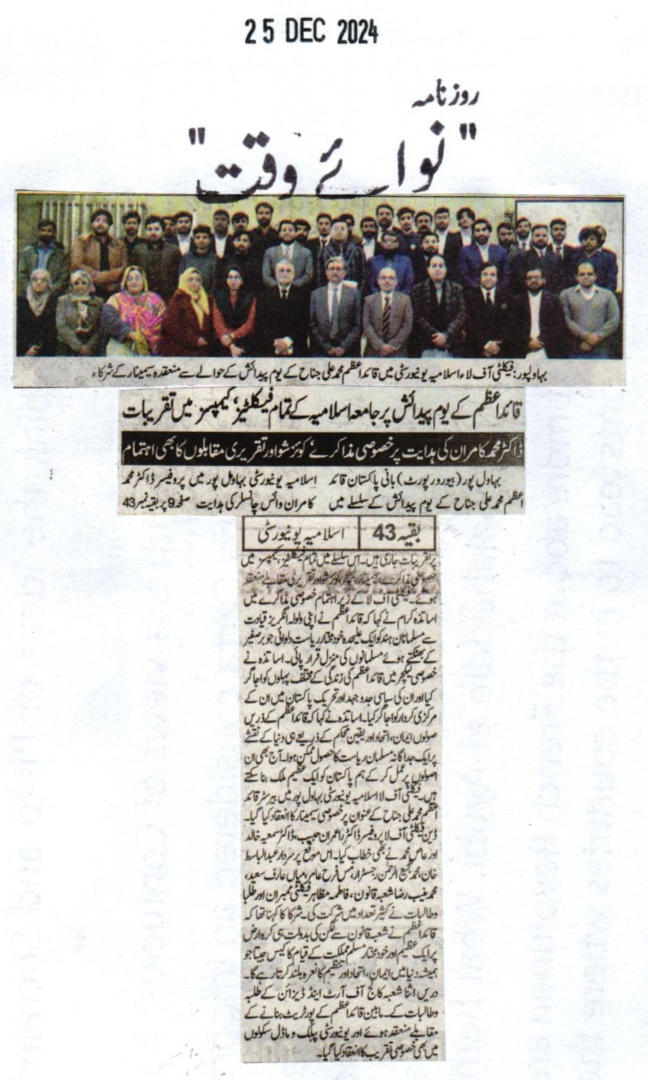 The Islamia University of Bahawalpur was established in the year 1975 by upgrading historical institute of the Jamia Abbasia.