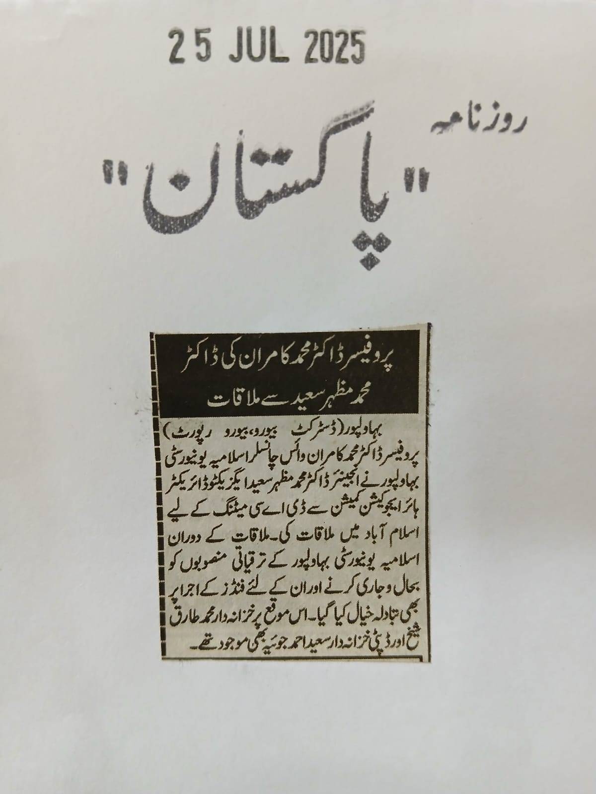 The Islamia University of Bahawalpur was established in the year 1975 by upgrading historical institute of the Jamia Abbasia.