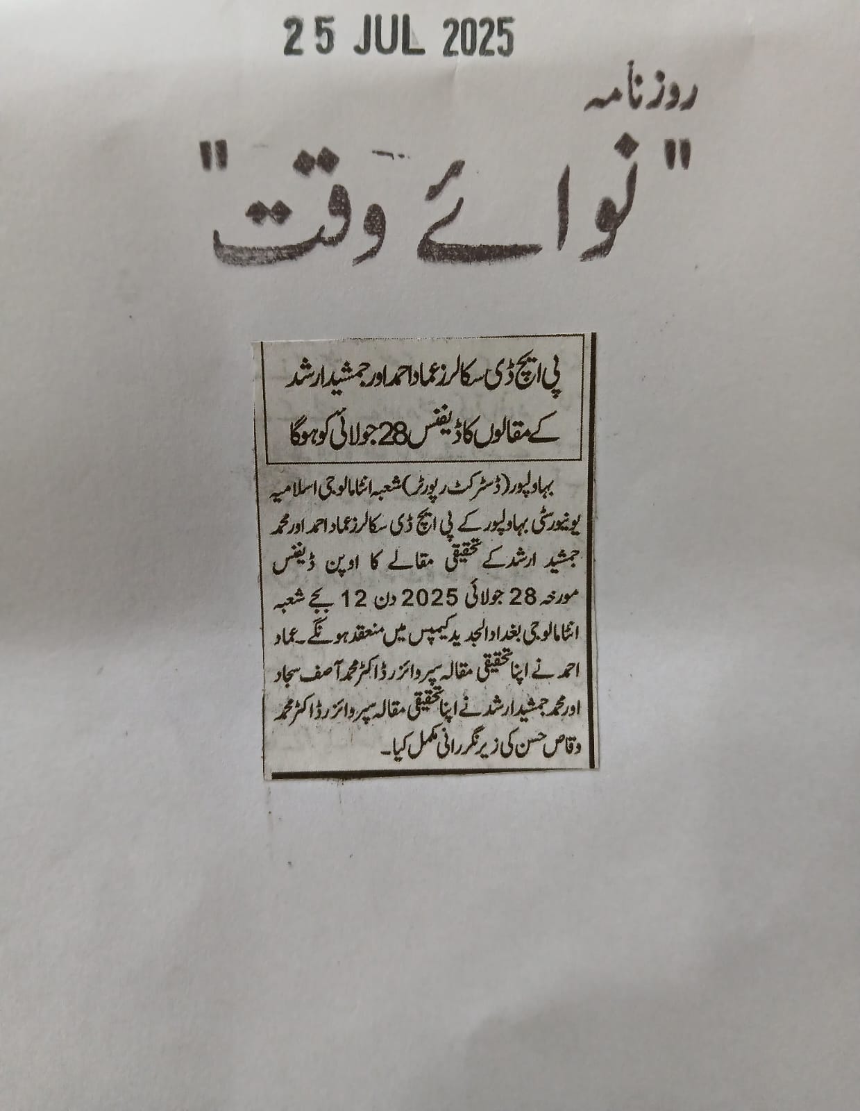 News Cuttings 25 July 2025