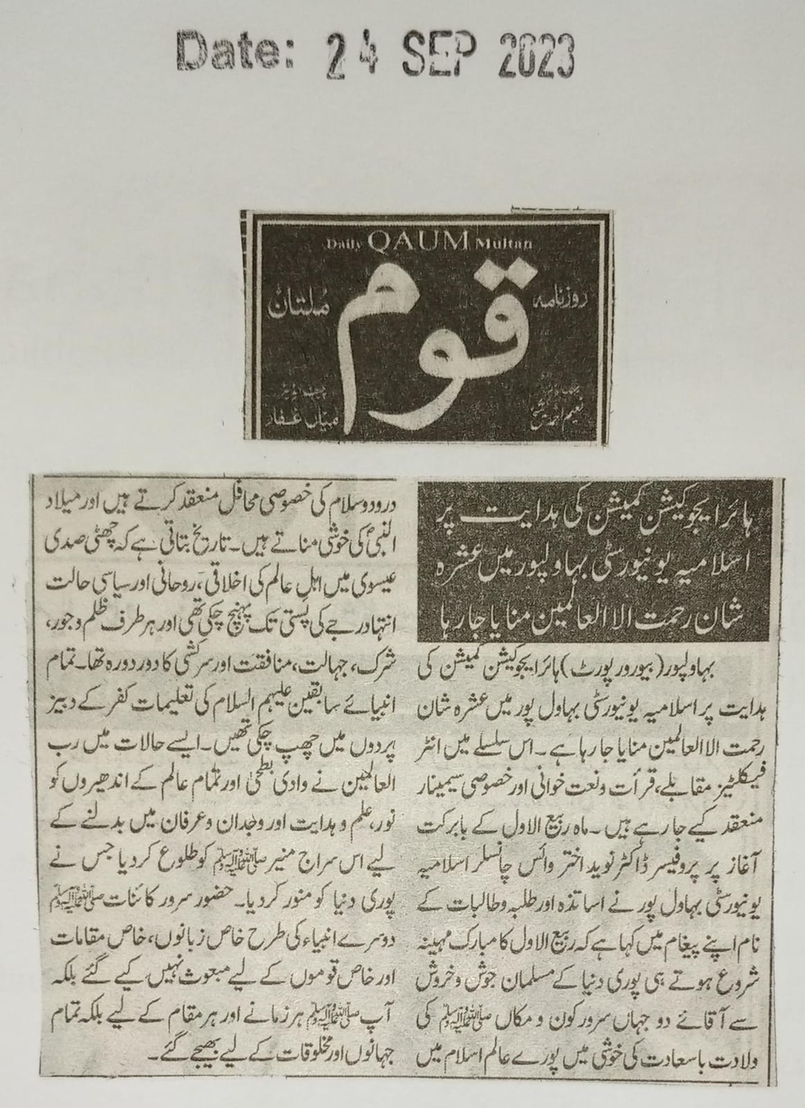 The Islamia University of Bahawalpur was established in the year 1975 by upgrading historical institute of the Jamia Abbasia.