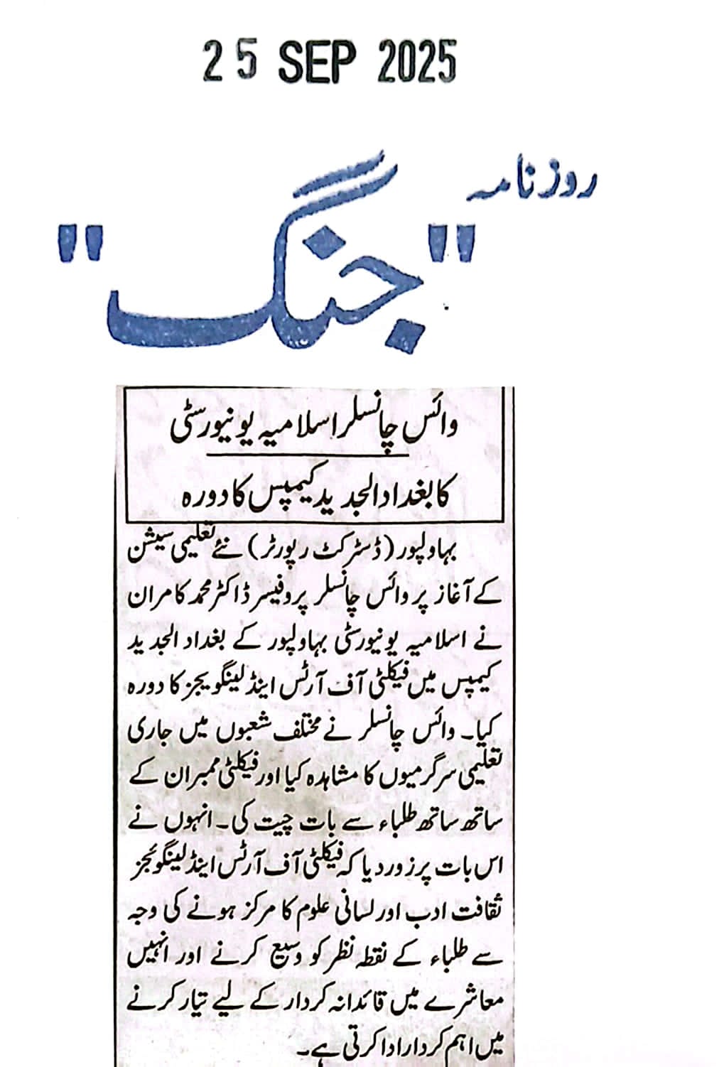The Islamia University of Bahawalpur was established in the year 1975 by upgrading historical institute of the Jamia Abbasia.