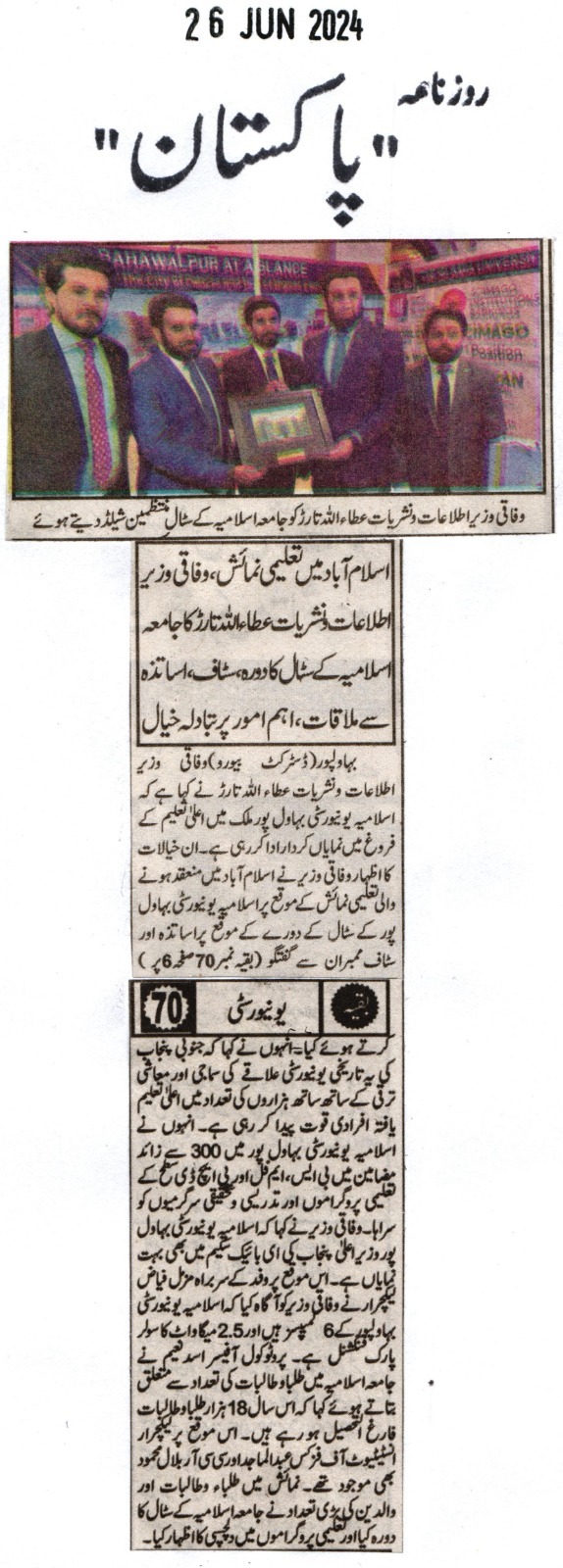 The Islamia University of Bahawalpur was established in the year 1975 by upgrading historical institute of the Jamia Abbasia.