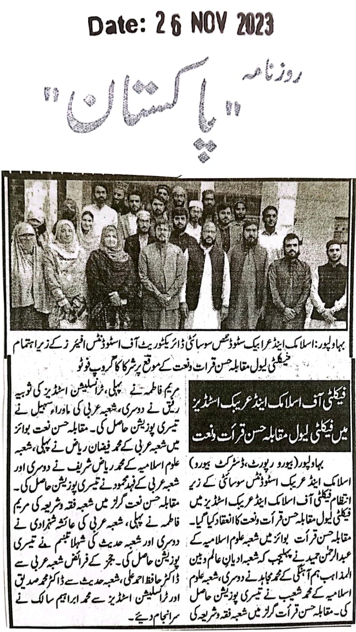 The Islamia University of Bahawalpur was established in the year 1975 by upgrading historical institute of the Jamia Abbasia.