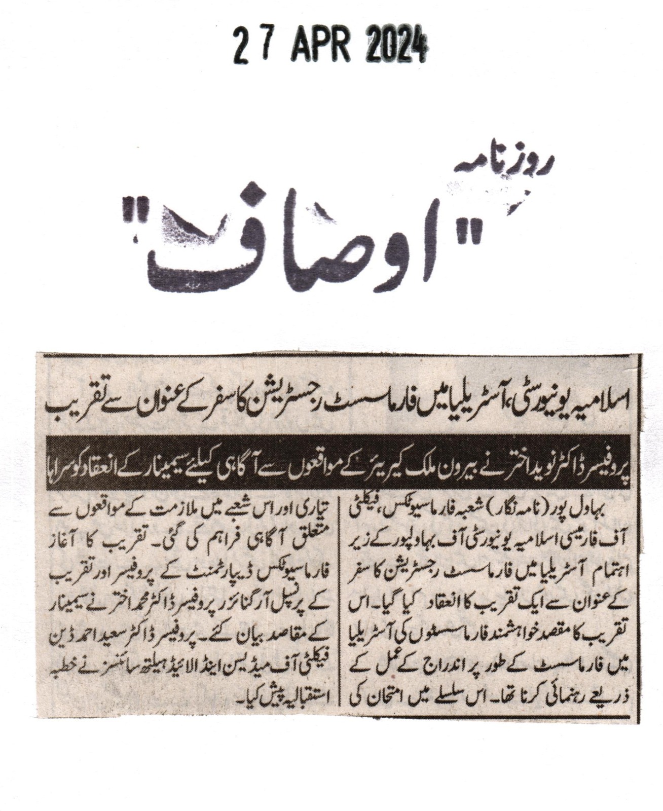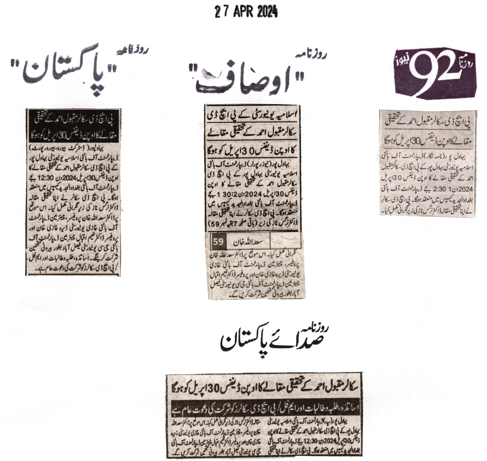 News Cuttings 27 April 2024