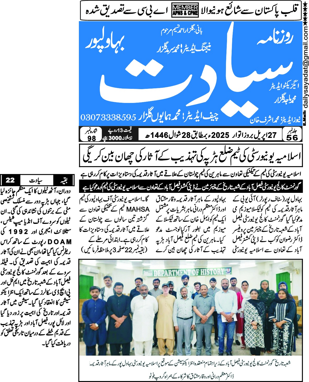 The Islamia University of Bahawalpur was established in the year 1975 by upgrading historical institute of the Jamia Abbasia.